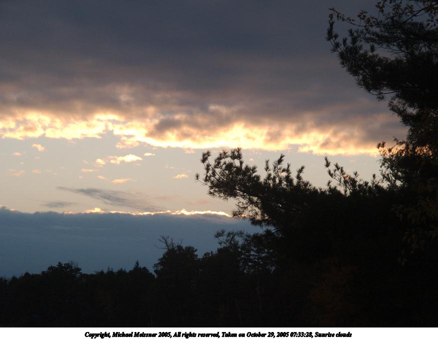 Picture #15: Sunrise clouds #3 874x678, 67,221 bytes (66K), (html file) Copyright, Michael Meissner 2005, All rights reserved Olympus E-1 camera with Olympus 14-54mm f/2.8-3.5 lens f/8.0, ISO 100, 1/320 sec, 54.0mm, aperture priority, SHQ, spot metering, bias -1.0, +2 sharpening, Exposure bracketing (shot 3) 35mm equivalent focal length 108.0mm Taken by Michael Meissner on October 29, 2005 07:35:46 Last modified on October 29, 2005 at 10:33 |