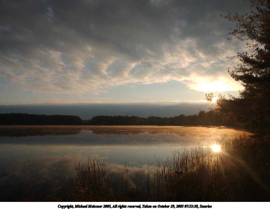 Picture #10: Sunrise #2 640x503, 44,615 bytes (44K), (html file) Copyright, Michael Meissner 2005, All rights reserved Olympus E-1 camera with Olympus 14-54mm f/2.8-3.5 lens f/11.0, ISO 100, 1/80 sec, 14.0mm, aperture priority, SHQ, spot metering, +2 sharpening, Exposure bracketing (shot 1) 35mm equivalent focal length 28.0mm Taken by Michael Meissner on October 29, 2005 07:49:15 Last modified on October 29, 2005 at 10:34 |