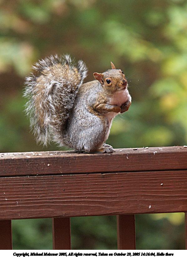 Picture #6: Hello there 600x823, 91,306 bytes (90K), (html file) Copyright, Michael Meissner 2005, All rights reserved Olympus E-1 camera with Olympus 50-200mm f/2.8-3.5 lens f/2.9, ISO 400, 1/100 sec, 112.0mm, auto mode, SHQ, matrix metering, +2 sharpening 35mm equivalent focal length 224.0mm Taken by Michael Meissner on October 29, 2005 14:16:04 Last modified on October 29, 2005 at 14:47 |