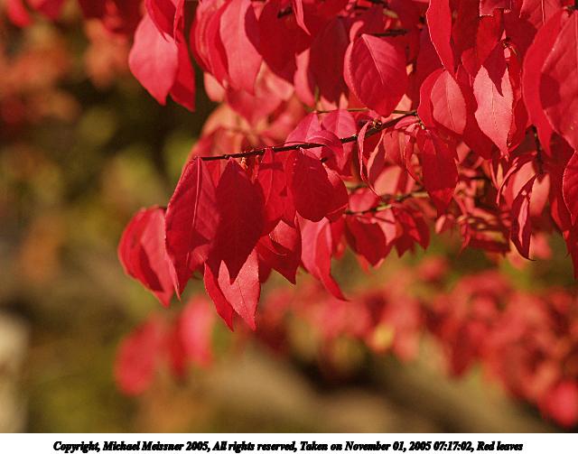 Picture #86: Red leaves 640x503, 54,918 bytes (54K), (html file) Copyright, Michael Meissner 2005, All rights reserved Olympus E-1 camera with Olympus 50-200mm f/2.8-3.5 lens f/5.0, ISO 200, 1/400 sec, 200.0mm, auto mode, SHQ, matrix metering, +2 sharpening 35mm equivalent focal length 401.0mm Taken by Michael Meissner on November 01, 2005 07:17:02 Last modified on November 01, 2005 at 07:51 |