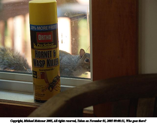 Picture #20: Who goes there? #2 640x503, 71,544 bytes (70K), (html file) Copyright, Michael Meissner 2005, All rights reserved Olympus E-1 camera with Olympus 14-54mm f/2.8-3.5 lens f/4.0, ISO 100, FL-50 flash, 1/100 sec, 50.0mm, aperture priority, SHQ, matrix metering, +2 sharpening 35mm equivalent focal length 100.0mm Extra equipment used: FL-50 flash Taken by Michael Meissner on November 25, 2005 23:26:29 Last modified on November 26, 2005 at 00:17 |