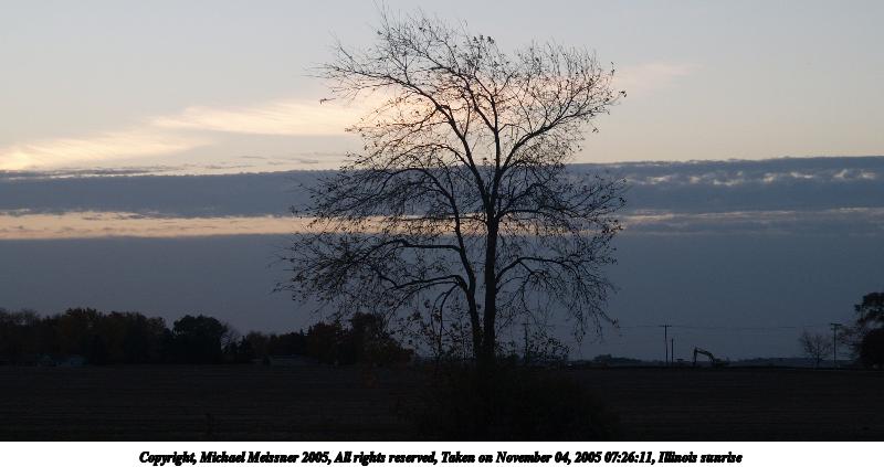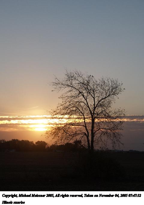 Picture #66: Illinois sunrise #3 640x503, 48,773 bytes (48K), (html file) Copyright, Michael Meissner 2005, All rights reserved Olympus E-1 camera with Olympus 14-54mm f/2.8-3.5 lens f/5.6, ISO 200, 1/250 sec, 42.0mm, auto mode, SHQ, spot metering, bias -1.0, +2 sharpening, Exposure bracketing (shot 3) 35mm equivalent focal length 84.0mm Taken by Michael Meissner on November 04, 2005 07:29:26 Last modified on November 11, 2005 at 23:07 |