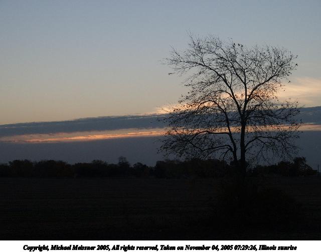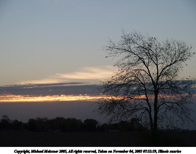 Picture #63: Illinois sunrise #6 640x503, 59,109 bytes (58K), (html file) Copyright, Michael Meissner 2005, All rights reserved Olympus E-1 camera with Olympus 14-54mm f/2.8-3.5 lens f/5.0, ISO 100, 1/250 sec, 52.0mm, auto mode, SHQ, spot metering, +2 sharpening, Exposure bracketing (shot 1) 35mm equivalent focal length 104.0mm Taken by Michael Meissner on November 04, 2005 07:41:42 Last modified on November 11, 2005 at 23:08 |