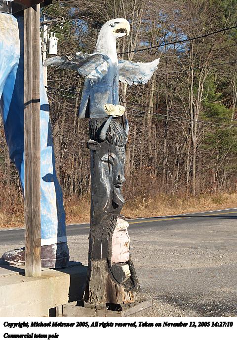 Picture #60: Commercial totem pole 480x686, 121,100 bytes (119K), (html file) Copyright, Michael Meissner 2005, All rights reserved Olympus E-1 camera with Olympus 14-54mm f/2.8-3.5 lens f/6.3, ISO 100, 1/320 sec, 40.0mm, auto mode, SHQ, matrix metering, +2 sharpening 35mm equivalent focal length 80.0mm Taken by Michael Meissner on November 12, 2005 14:27:10 Last modified on November 12, 2005 at 22:21 |