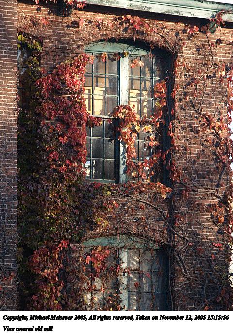 Picture #42: Vine covered old mill 480x686, 127,549 bytes (125K), (html file) Copyright, Michael Meissner 2005, All rights reserved Olympus E-1 camera with Olympus 50-200mm f/2.8-3.5 lens f/5.0, ISO 400, 1/400 sec, 169.0mm, auto mode, SHQ, spot metering, +2 sharpening 35mm equivalent focal length 339.0mm Taken by Michael Meissner on November 12, 2005 15:15:56 Last modified on November 12, 2005 at 22:22 |
