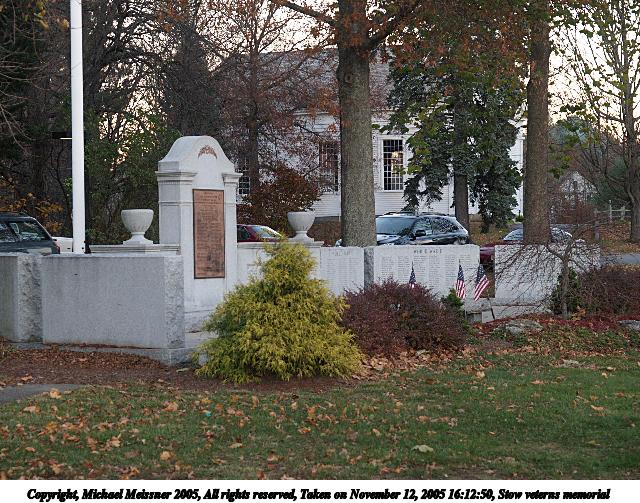Picture #38: Stow veterns memorial 640x503, 116,134 bytes (114K), (html file) Copyright, Michael Meissner 2005, All rights reserved Olympus E-1 camera with Olympus 14-54mm f/2.8-3.5 lens f/4.0, ISO 400, 1/125 sec, 43.0mm, auto mode, SHQ, matrix metering, +2 sharpening 35mm equivalent focal length 86.0mm Taken by Michael Meissner on November 12, 2005 16:12:50 Last modified on November 12, 2005 at 22:22 |