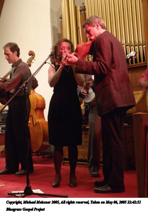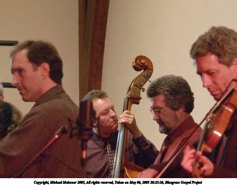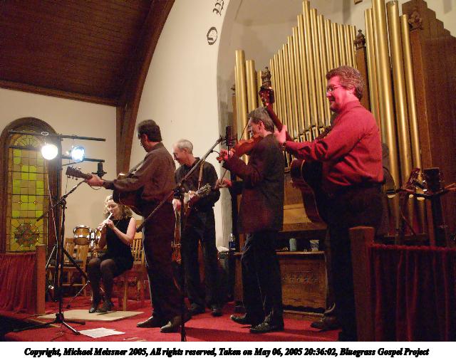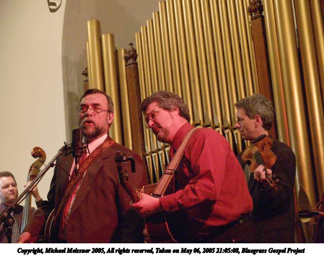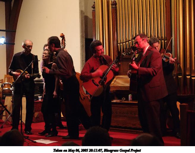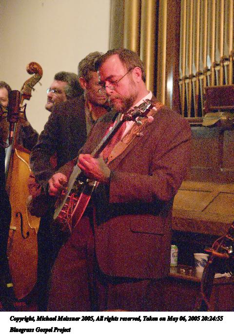 Picture #4: Bluegrass Gospel Project #4 640x503, 74,457 bytes (73K), (html file) Copyright, Michael Meissner 2005, All rights reserved Olympus E-1 camera with Olympus 14-54mm f/2.8-3.5 lens f/3.3, ISO 800, 1/15 sec, 37.0mm, auto mode, SHQ, matrix metering, -2 contrast, +2 sharpening 35mm equivalent focal length 74.0mm Taken by Michael Meissner on May 06, 2005 20:15:09 Last modified on May 07, 2005 at 07:09 |