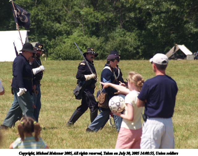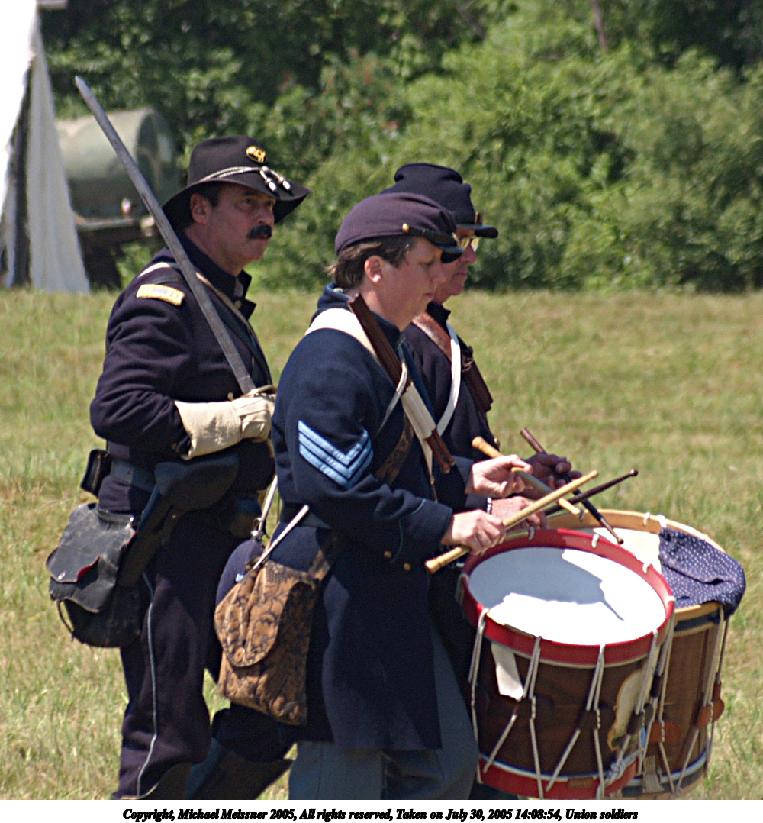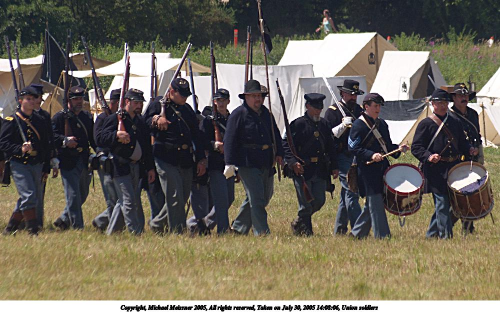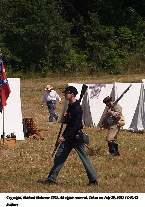 Picture #8: Union soldiers #3 Thumb: 382x400, 52,315 bytes (52K) Small: 763x823, 116,153 bytes (114K), (html file) Copyright, Michael Meissner 2005, All rights reserved Olympus E-1 camera with Sigma 55-200mm f/4.0-5.6 lens f/7.1, ISO 100, 1/320 sec, 200.0mm, auto mode, SHQ, matrix metering, +2 sharpening 35mm equivalent focal length 401.0mm Taken by Michael Meissner on July 30, 2005 14:08:54 Last modified on July 30, 2005 at 22:49 |