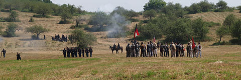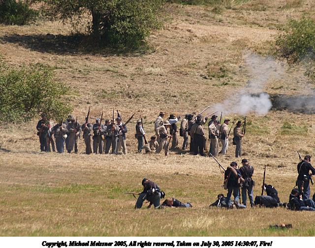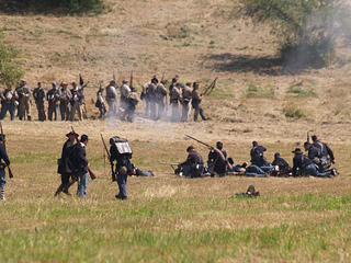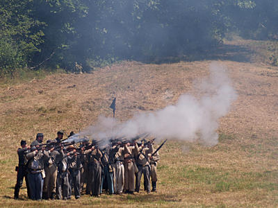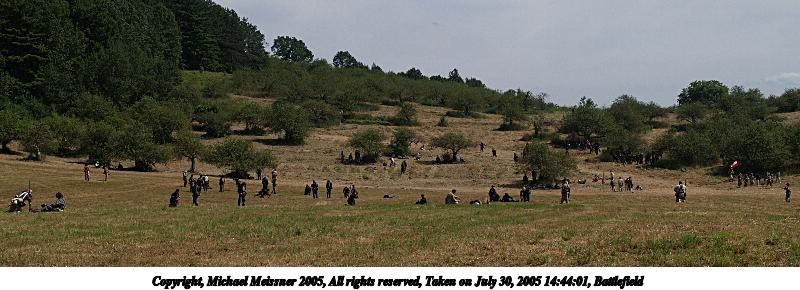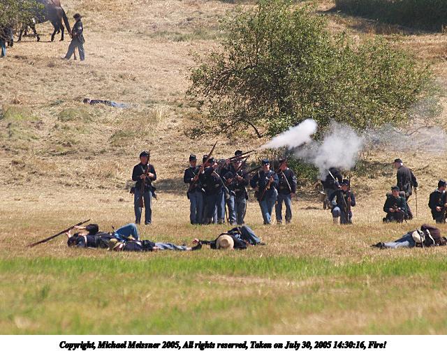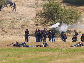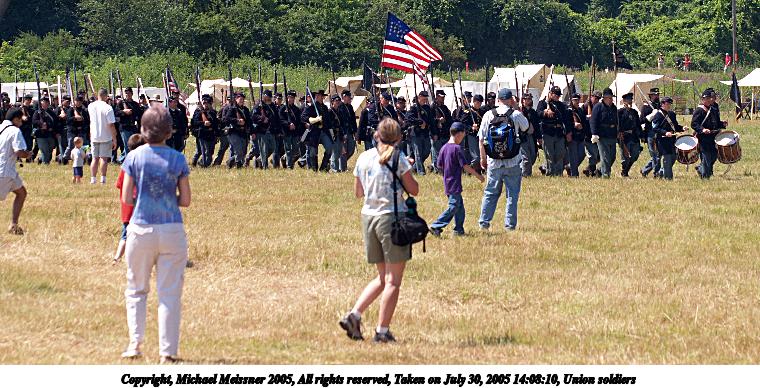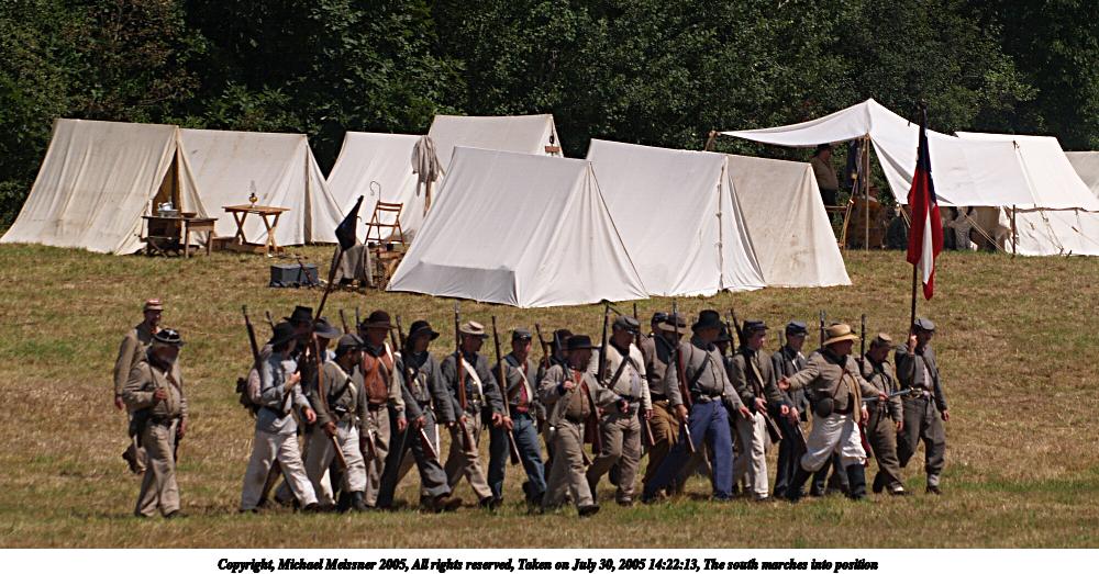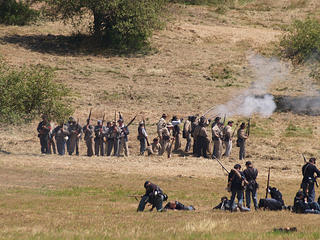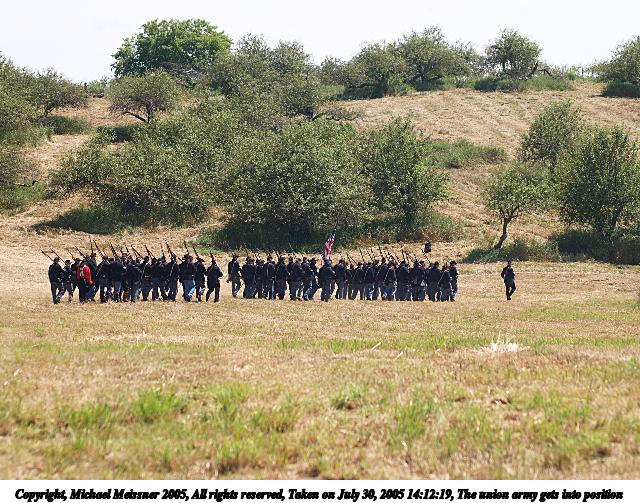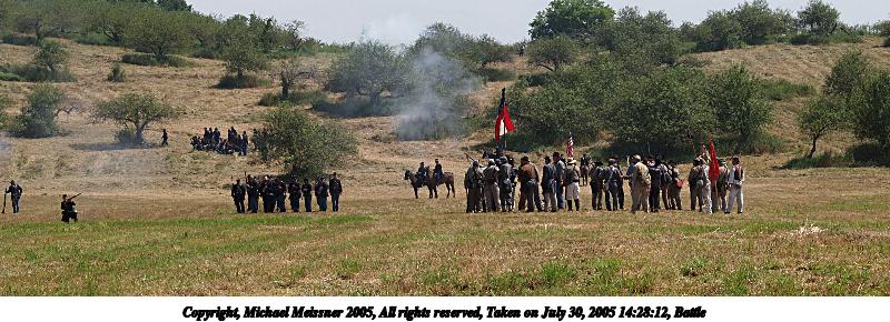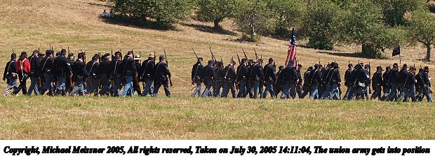 Picture #12: The union army gets into position Thumb: 496x160, 40,670 bytes (40K) Small: 620x223, 63,269 bytes (62K), (html file) Copyright, Michael Meissner 2005, All rights reserved Olympus E-1 camera with Sigma 55-200mm f/4.0-5.6 lens f/6.3, ISO 100, 1/320 sec, 55.0mm, auto mode, SHQ, matrix metering, +2 sharpening 35mm equivalent focal length 110.0mm Taken by Michael Meissner on July 30, 2005 14:11:04 Last modified on July 30, 2005 at 22:49 |