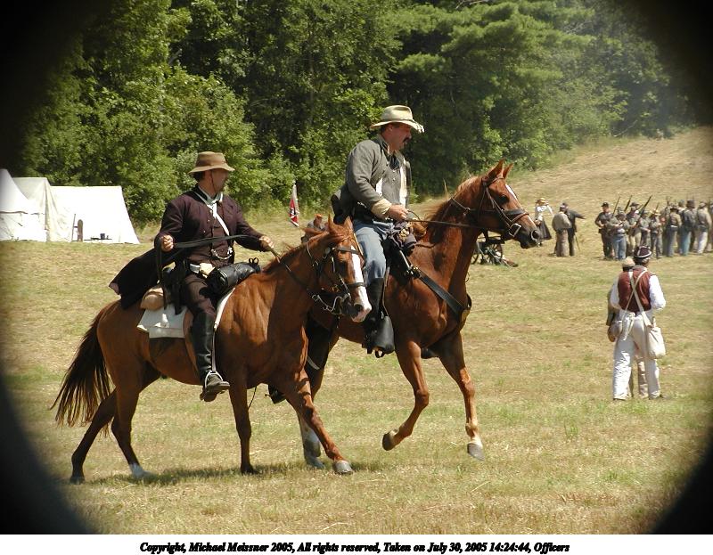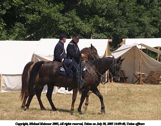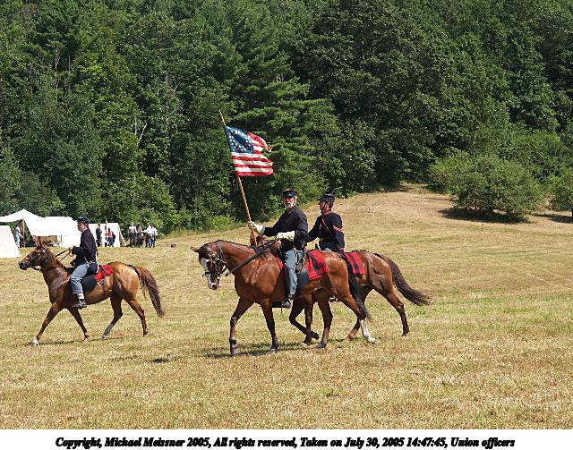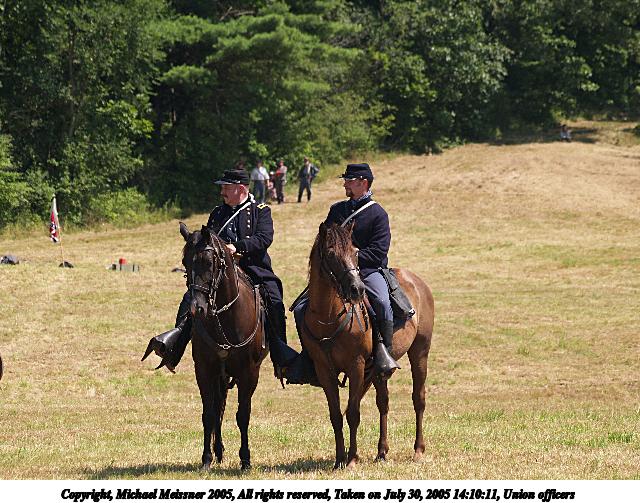 Picture #10: Union officers Thumb: 320x240, 35,151 bytes (35K) Small: 640x503, 100,162 bytes (98K), (html file) Copyright, Michael Meissner 2005, All rights reserved Olympus E-1 camera with Sigma 55-200mm f/4.0-5.6 lens f/8.0, ISO 100, 1/500 sec, 134.0mm, auto mode, SHQ, matrix metering, +2 sharpening 35mm equivalent focal length 268.0mm Taken by Michael Meissner on July 30, 2005 14:09:40 Last modified on July 30, 2005 at 22:49 |