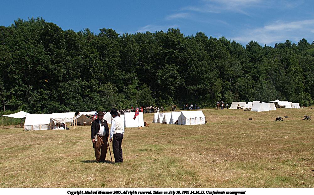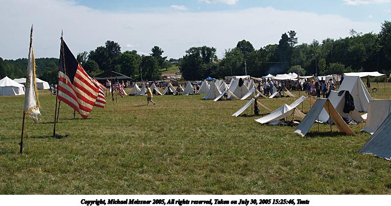 Picture #17: Confederate encampment Thumb: 500x300, 53,038 bytes (52K) Small: 1000x623, 169,471 bytes (166K), (html file) Copyright, Michael Meissner 2005, All rights reserved Olympus E-1 camera with Olympus 14-54mm f/2.8-3.5 lens f/8.0, ISO 100, 1/320 sec, 14.0mm, auto mode, SHQ, matrix metering, +2 sharpening 35mm equivalent focal length 28.0mm Taken by Michael Meissner on July 30, 2005 14:16:53 Last modified on July 30, 2005 at 22:49 |