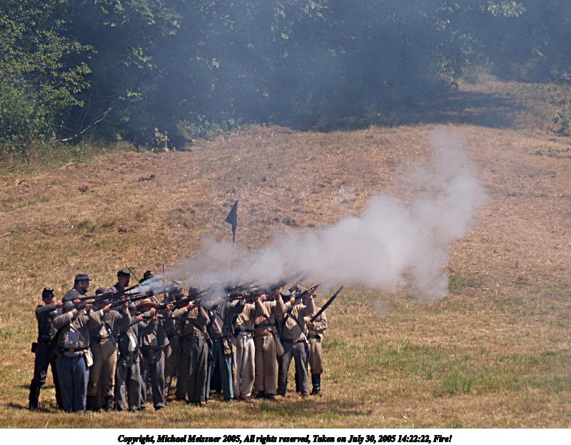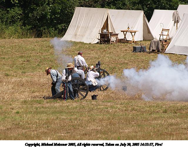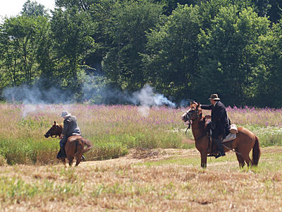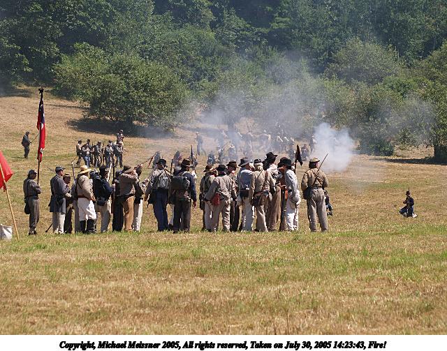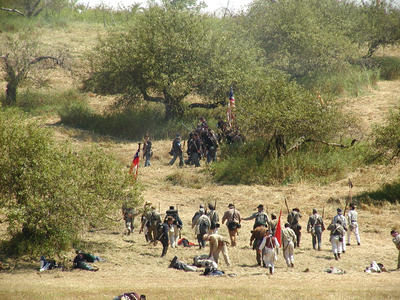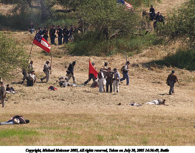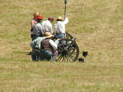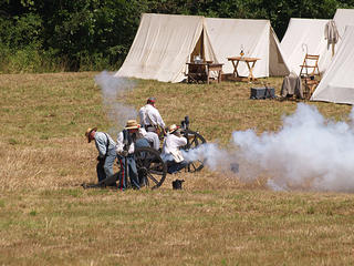 Picture #60: Confederate soldiers chasing the Union Thumb: 400x300, 46,746 bytes (46K) Small: 800x623, 177,221 bytes (174K), (html file) Copyright, Michael Meissner 2005, All rights reserved Olympus C-2100UZ camera f/4.5, ISO 100, 1/500 sec, 35.7mm, auto mode, SHQ, cloudy, matrix metering 35mm equivalent focal length 337.0mm Extra equipment used: Tcon-17 1.7x teleconverter Taken by Michael Meissner on July 30, 2005 14:36:04 Last modified on August 06, 2005 at 15:48 |