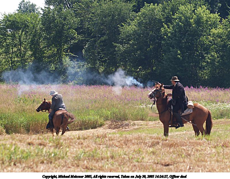 Picture #22: Officer duel Thumb: 400x300, 52,887 bytes (52K) Small: 800x623, 151,205 bytes (148K), (html file) Copyright, Michael Meissner 2005, All rights reserved Olympus E-1 camera with Sigma 55-200mm f/4.0-5.6 lens f/5.6, ISO 100, 1/320 sec, 75.0mm, auto mode, SHQ, matrix metering, +2 sharpening 35mm equivalent focal length 150.0mm Taken by Michael Meissner on July 30, 2005 14:24:27 Last modified on July 30, 2005 at 22:50 |