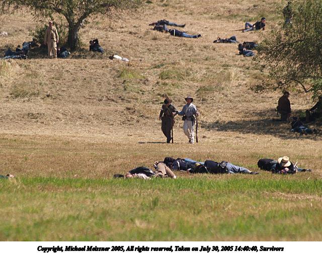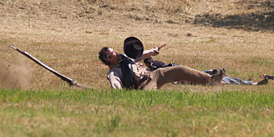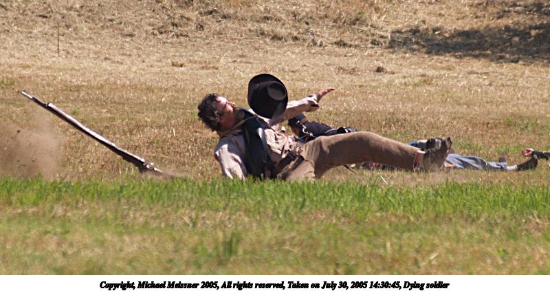 Picture #29: Dying soldier Thumb: 400x200, 34,383 bytes (34K) Small: 800x423, 83,903 bytes (82K), (html file) Copyright, Michael Meissner 2005, All rights reserved Olympus E-1 camera with Sigma 55-200mm f/4.0-5.6 lens f/7.1, ISO 100, 1/320 sec, 200.0mm, auto mode, SHQ, matrix metering, +2 sharpening 35mm equivalent focal length 401.0mm Taken by Michael Meissner on July 30, 2005 14:30:45 Last modified on July 30, 2005 at 22:51 |