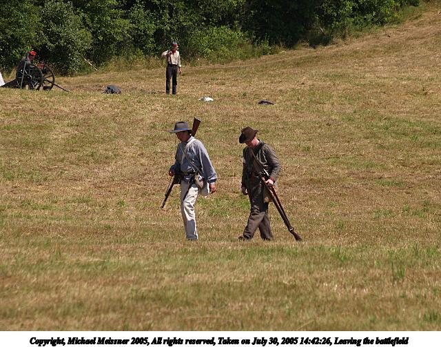 Picture #38: Leaving the battlefield #2 Thumb: 480x320, 62,915 bytes (62K) Small: 800x556, 137,086 bytes (134K), (html file) Copyright, Michael Meissner 2005, All rights reserved Olympus E-1 camera with Sigma 55-200mm f/4.0-5.6 lens f/6.3, ISO 100, 1/320 sec, 140.0mm, auto mode, SHQ, matrix metering, +2 sharpening 35mm equivalent focal length 280.0mm Taken by Michael Meissner on July 30, 2005 14:44:51 Last modified on July 30, 2005 at 22:52 |