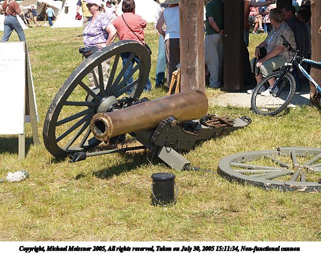 Picture #42: Non-functional cannon Thumb: 320x240, 40,403 bytes (40K) Small: 640x503, 125,318 bytes (123K), (html file) Copyright, Michael Meissner 2005, All rights reserved Olympus E-1 camera with Olympus 14-54mm f/2.8-3.5 lens f/8.0, ISO 100, ext. flash, 1/160 sec, 38.0mm, auto mode, SHQ, matrix metering, +2 sharpening 35mm equivalent focal length 76.0mm Taken by Michael Meissner on July 30, 2005 15:11:34 Last modified on July 30, 2005 at 22:53 |