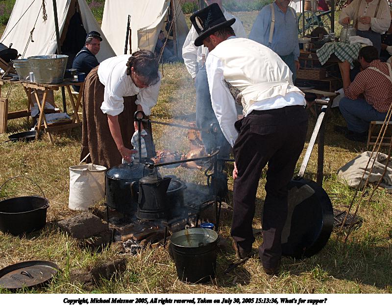 Picture #39: Reenactors Thumb: 240x320, 31,932 bytes (32K) Small: 480x686, 68,252 bytes (67K), (html file) Copyright, Michael Meissner 2005, All rights reserved Olympus E-1 camera with Sigma 55-200mm f/4.0-5.6 lens f/5.6, ISO 100, 1/250 sec, 55.0mm, auto mode, SHQ, matrix metering, +2 sharpening 35mm equivalent focal length 110.0mm Taken by Michael Meissner on July 30, 2005 14:46:29 Last modified on July 30, 2005 at 22:52 |