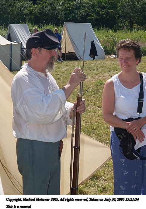 Picture #14: Reenactor #2 Thumb: 240x320, 33,595 bytes (33K) Small: 480x686, 102,939 bytes (101K), (html file) Copyright, Michael Meissner 2005, All rights reserved Olympus E-1 camera with Sigma 55-200mm f/4.0-5.6 lens f/7.1, ISO 100, 1/500 sec, 93.0mm, auto mode, SHQ, matrix metering, +2 sharpening 35mm equivalent focal length 186.0mm Taken by Michael Meissner on July 30, 2005 14:12:12 Last modified on July 30, 2005 at 22:49 |