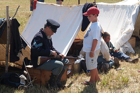 Picture #61: Reenactor #5 Thumb: 400x300, 32,253 bytes (32K) Small: 800x623, 91,072 bytes (89K), (html file) Copyright, Michael Meissner 2005, All rights reserved Olympus C-2100UZ camera f/4.5, ISO 100, 1/500 sec, 61.0mm, auto mode, SHQ, cloudy, matrix metering 35mm equivalent focal length 575.0mm Extra equipment used: Tcon-17 1.7x teleconverter Taken by Michael Meissner on July 30, 2005 14:53:10 Last modified on August 06, 2005 at 15:49 |
