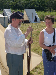 Picture #18: Reenactor #3 Thumb: 240x320, 38,867 bytes (38K) Small: 480x686, 134,531 bytes (132K), (html file) Copyright, Michael Meissner 2005, All rights reserved Olympus E-1 camera with Olympus 14-54mm f/2.8-3.5 lens f/6.3, ISO 100, 1/400 sec, 50.0mm, auto mode, SHQ, matrix metering, +2 sharpening 35mm equivalent focal length 100.0mm Taken by Michael Meissner on July 30, 2005 14:18:18 Last modified on July 30, 2005 at 22:49 |