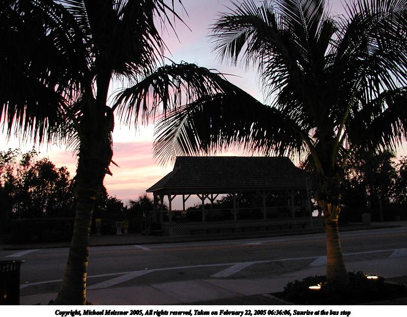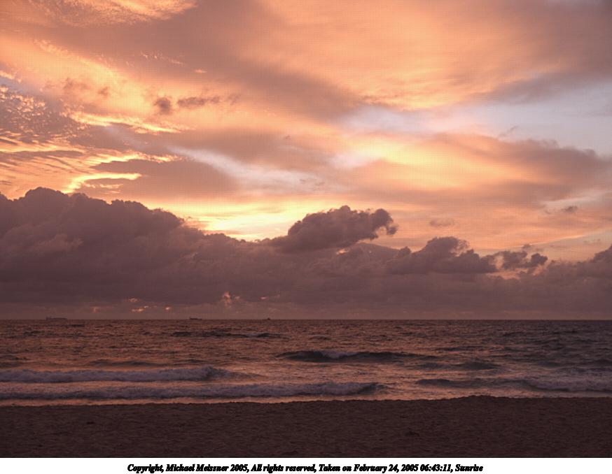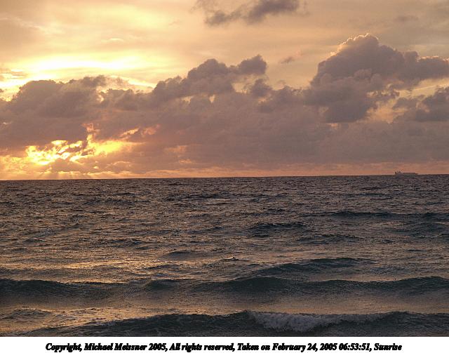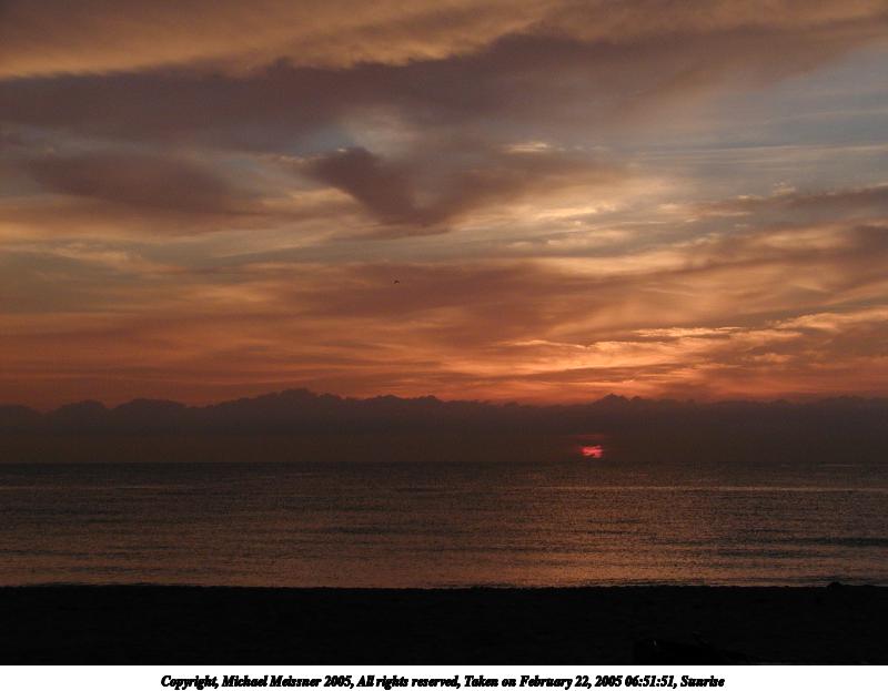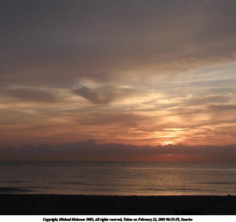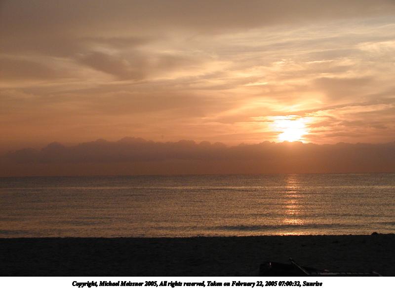 Picture #121: Sunrise #2 800x755, 50,953 bytes (50K), (html file) Copyright, Michael Meissner 2005, All rights reserved Olympus C-2100UZ camera f/2.8, ISO 100, 1/250 sec, 11.0mm, auto mode, SHQ, matrix metering 35mm equivalent focal length 61.0mm Taken by Michael Meissner on February 22, 2005 06:55:59 Last modified on February 25, 2005 at 15:36 Shutter speed of 1/125 or 1/250 may indicate use of flash |