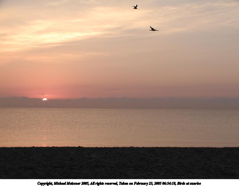 Picture #113: Birds at sunrise 800x623, 40,755 bytes (40K), (html file) Copyright, Michael Meissner 2005, All rights reserved Olympus C-2100UZ camera f/4.0, ISO 100, 1/500 sec, 11.6mm, auto mode, SHQ, spot metering 35mm equivalent focal length 64.0mm Taken by Michael Meissner on February 23, 2005 06:54:18 Last modified on February 25, 2005 at 15:58 |