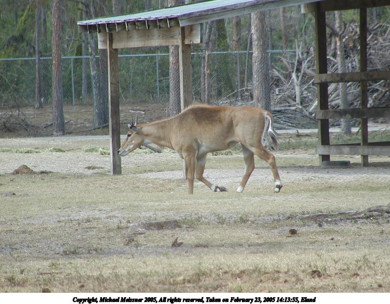 Picture #63: Eland #2 800x623, 124,160 bytes (122K), (html file) Copyright, Michael Meissner 2005, All rights reserved Olympus C-2100UZ camera f/3.5, ISO 100, 1/400 sec, 70.0mm, auto mode, SHQ, matrix metering 35mm equivalent focal length 388.0mm Extra equipment used: Polarizer, shot through car window Taken by Michael Meissner on February 23, 2005 14:10:16 Last modified on July 21, 2005 at 15:13 |