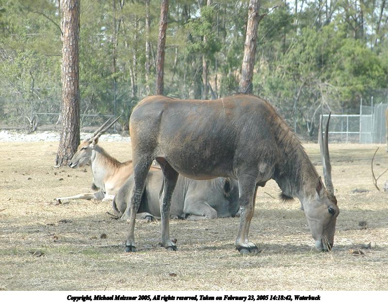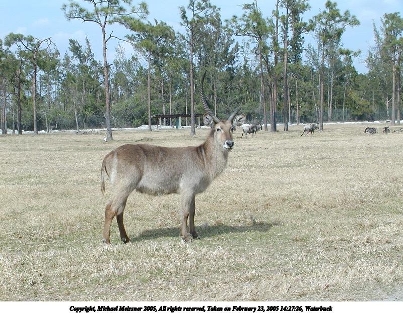 Picture #52: Waterbuck #2 800x623, 151,210 bytes (148K), (html file) Copyright, Michael Meissner 2005, All rights reserved Olympus C-2100UZ camera f/5.0, ISO 100, 1/400 sec, 12.7mm, auto mode, SHQ, matrix metering 35mm equivalent focal length 70.0mm Extra equipment used: Polarizer, shot through car window Taken by Michael Meissner on February 23, 2005 14:27:26 Last modified on July 21, 2005 at 15:16 |