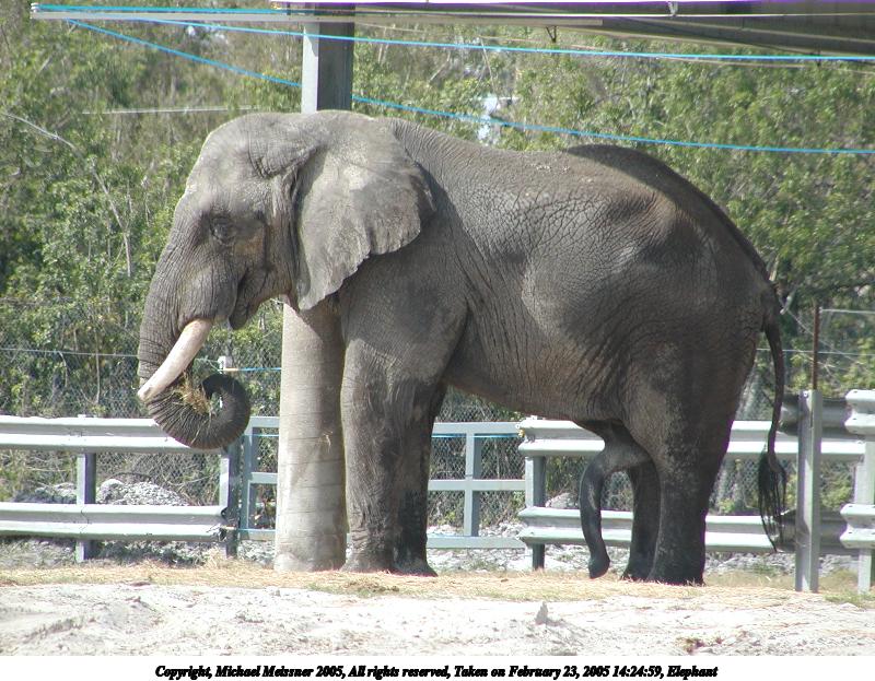 Picture #54: Elephant #2 800x623, 120,872 bytes (119K), (html file) Copyright, Michael Meissner 2005, All rights reserved Olympus C-2100UZ camera f/3.5, ISO 100, 1/650 sec, 70.0mm, auto mode, SHQ, matrix metering 35mm equivalent focal length 388.0mm Extra equipment used: Polarizer, shot through car window Taken by Michael Meissner on February 23, 2005 14:24:59 Last modified on July 21, 2005 at 15:16 |
