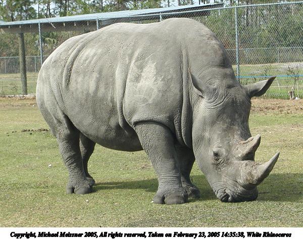 Picture #47: White Rhinoceros 600x473, 90,080 bytes (88K), (html file) Copyright, Michael Meissner 2005, All rights reserved Olympus C-2100UZ camera f/3.5, ISO 100, 1/650 sec, 20.7mm, auto mode, SHQ, matrix metering 35mm equivalent focal length 115.0mm Extra equipment used: Polarizer, shot through car window Taken by Michael Meissner on February 23, 2005 14:35:38 Last modified on July 21, 2005 at 15:17 |