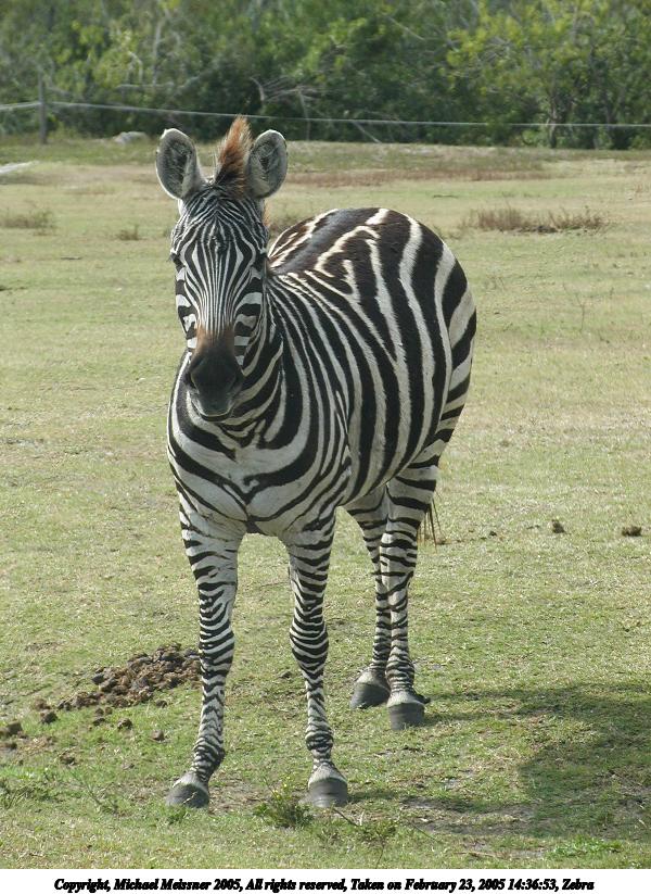 Picture #45: Zebra #2 600x823, 129,143 bytes (127K), (html file) Copyright, Michael Meissner 2005, All rights reserved Olympus C-2100UZ camera f/4.5, ISO 100, 1/500 sec, 34.1mm, auto mode, SHQ, matrix metering 35mm equivalent focal length 189.0mm Extra equipment used: Polarizer, shot through car window Taken by Michael Meissner on February 23, 2005 14:36:53 Last modified on July 21, 2005 at 15:18 |