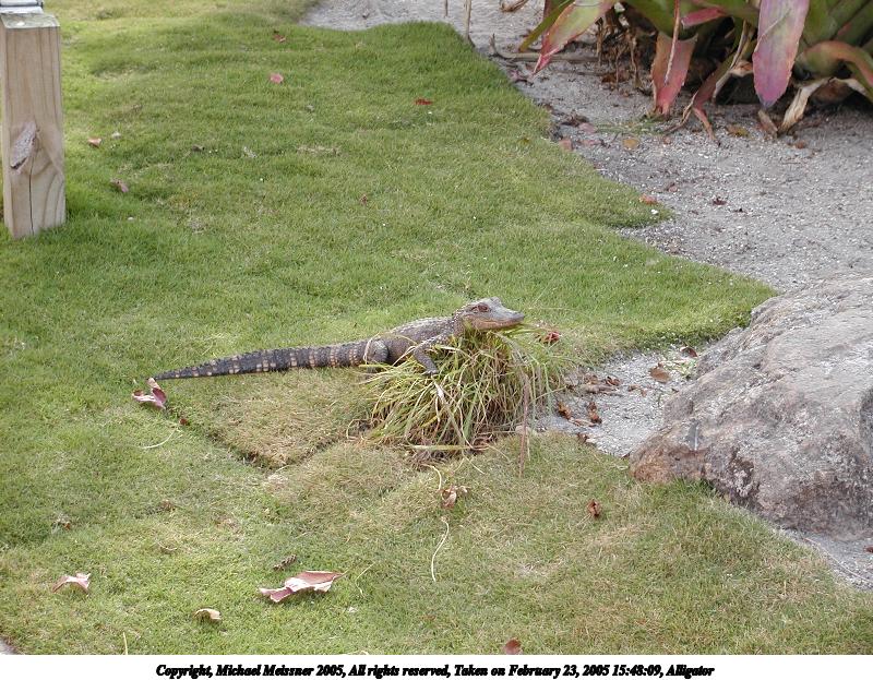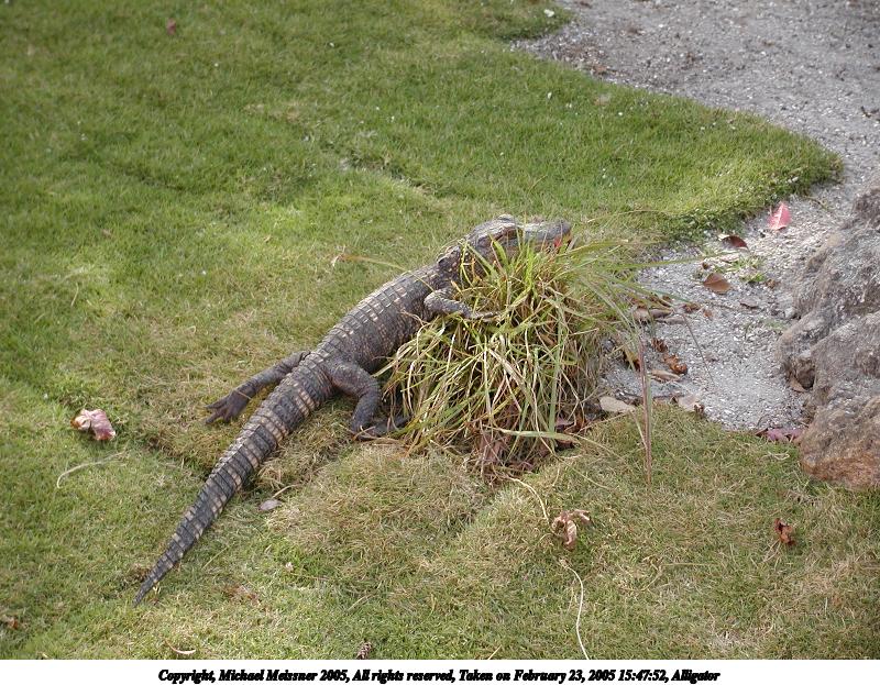 Picture #21: Alligator #2 800x623, 150,123 bytes (147K), (html file) Copyright, Michael Meissner 2005, All rights reserved Olympus C-2100UZ camera f/2.8, ISO 100, 1/250 sec, 20.0mm, auto mode, SHQ, matrix metering 35mm equivalent focal length 111.0mm Extra equipment used: Polarizer Taken by Michael Meissner on February 23, 2005 15:48:09 Last modified on July 21, 2005 at 15:24 Shutter speed of 1/125 or 1/250 may indicate use of flash |