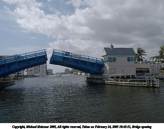 Picture #3: Bridge opening #2 640x503, 86,734 bytes (85K), (html file) Copyright, Michael Meissner 2005, All rights reserved Olympus E-1 camera with Olympus 14-54mm f/2.8-3.5 lens f/4.5, ISO 100, 1/250 sec, 54.0mm, shutter priority, SHQ, matrix metering, -2 contrast, +2 sharpening, auto + manual focus 35mm equivalent focal length 108.0mm Extra equipment used: Polarizer Taken by Michael Meissner on February 24, 2005 11:59:04 Last modified on July 21, 2005 at 15:29 |