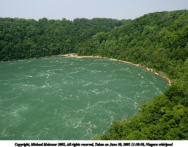 Picture #74: Niagara whirpool (below the falls) 640x503, 88,656 bytes (87K), (html file) Copyright, Michael Meissner 2005, All rights reserved Olympus E-1 camera with Olympus 14-54mm f/2.8-3.5 lens f/5.6, ISO 100, 1/320 sec, 54.0mm, auto mode, SHQ, matrix metering, -2 contrast, +2 sharpening 35mm equivalent focal length 108.0mm Taken by Michael Meissner on June 30, 2005 11:24:48 Last modified on July 06, 2005 at 19:35 |