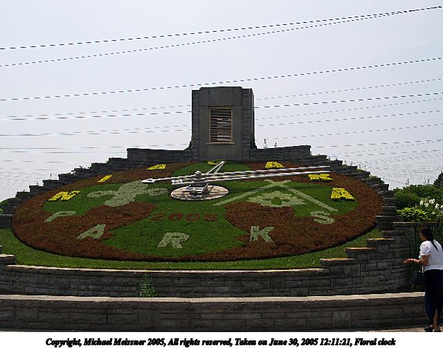 Picture #68: Floral clock 640x503, 71,674 bytes (70K), (html file) Copyright, Michael Meissner 2005, All rights reserved Olympus E-1 camera with Olympus 14-54mm f/2.8-3.5 lens f/5.6, ISO 100, 1/200 sec, 22.0mm, auto mode, SHQ, matrix metering, -2 contrast, +2 sharpening 35mm equivalent focal length 44.0mm Taken by Michael Meissner on June 30, 2005 12:11:21 Last modified on July 06, 2005 at 20:06 This year the design on the clock honors the Boy Scouts. |