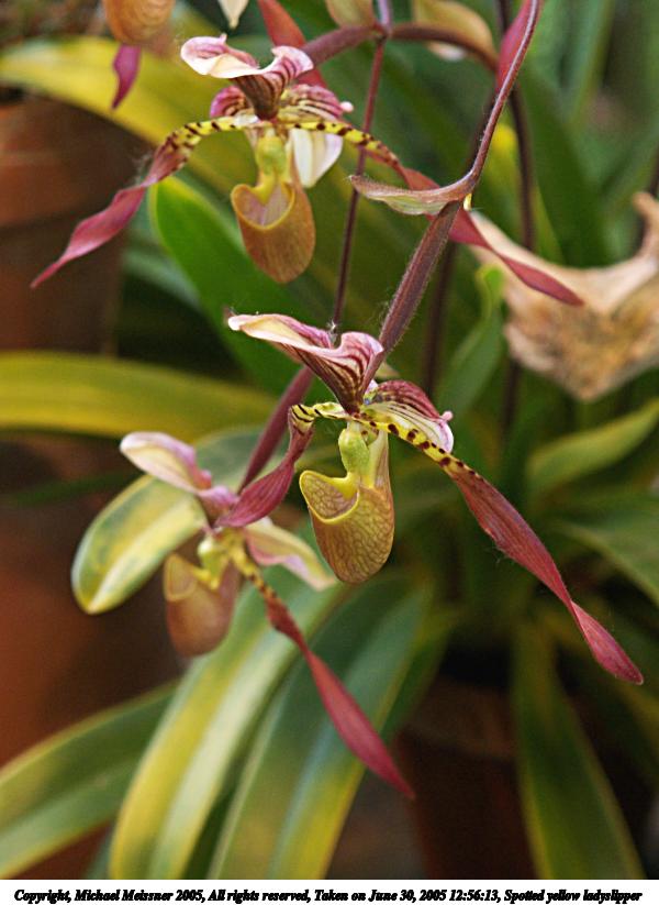Picture #58: Spotted yellow ladyslipper #2 600x823, 70,775 bytes (70K), (html file) Copyright, Michael Meissner 2005, All rights reserved Olympus E-1 camera with Olympus 14-54mm f/2.8-3.5 lens f/3.5, ISO 400, 1/50 sec, 54.0mm, auto mode, SHQ, matrix metering, -2 contrast, +2 sharpening 35mm equivalent focal length 108.0mm Taken by Michael Meissner on June 30, 2005 12:56:13 Last modified on July 06, 2005 at 22:27 |