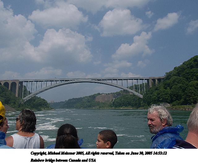 Picture #36: Rainbow bridge between Canada and USA 640x526, 61,402 bytes (60K), (html file) Copyright, Michael Meissner 2005, All rights reserved Olympus E-1 camera with Olympus 14-54mm f/2.8-3.5 lens f/10.0, ISO 100, 1/320 sec, 14.0mm, auto mode, SHQ, matrix metering, -2 contrast, +2 sharpening 35mm equivalent focal length 28.0mm Taken by Michael Meissner on June 30, 2005 14:53:12 Last modified on June 30, 2005 at 16:46 |