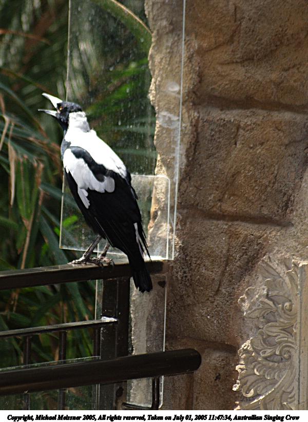 Picture #18: Austrailian Singing Crow 600x823, 96,583 bytes (95K), (html file) Copyright, Michael Meissner 2005, All rights reserved Olympus E-1 camera with Sigma 55-200mm f/4.0-5.6 lens f/5.2, ISO 100, ext. flash, 1/160 sec, 146.0mm, auto mode, SHQ, matrix metering, -2 contrast, +2 sharpening 35mm equivalent focal length 293.0mm Extra equipment used: Promaster 5750DX flash Taken by Michael Meissner on July 01, 2005 11:47:34 Last modified on July 09, 2005 at 20:00 |