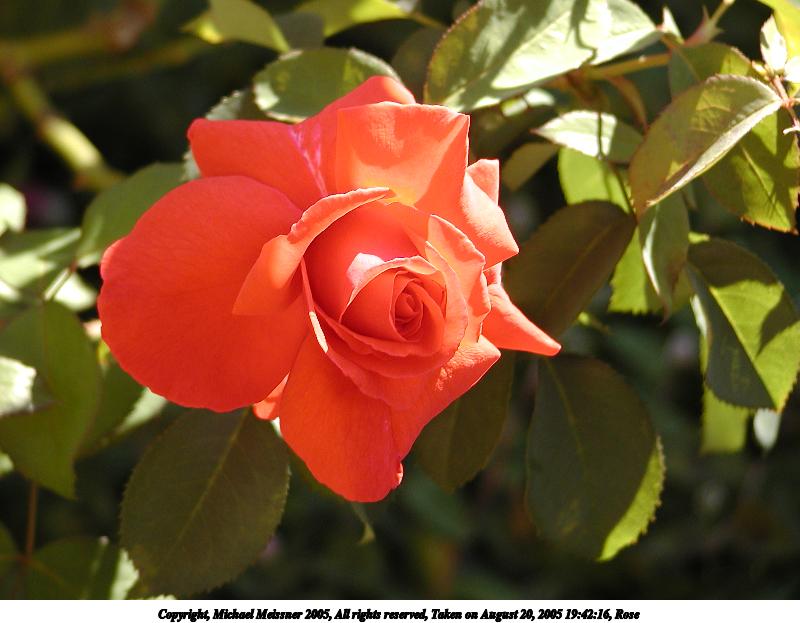 Picture #37: Rose #2 800x623, 47,526 bytes (47K), (html file) Copyright, Michael Meissner 2005, All rights reserved Olympus C-2100UZ camera f/2.8, ISO 100, 1/125 sec, 17.9mm, auto mode, SHQ, cloudy, matrix metering, macro 35mm equivalent focal length 99.0mm Taken by Michael Meissner on August 20, 2005 19:37:22 Last modified on August 27, 2005 at 13:02 Shutter speed of 1/125 or 1/250 may indicate use of flash |