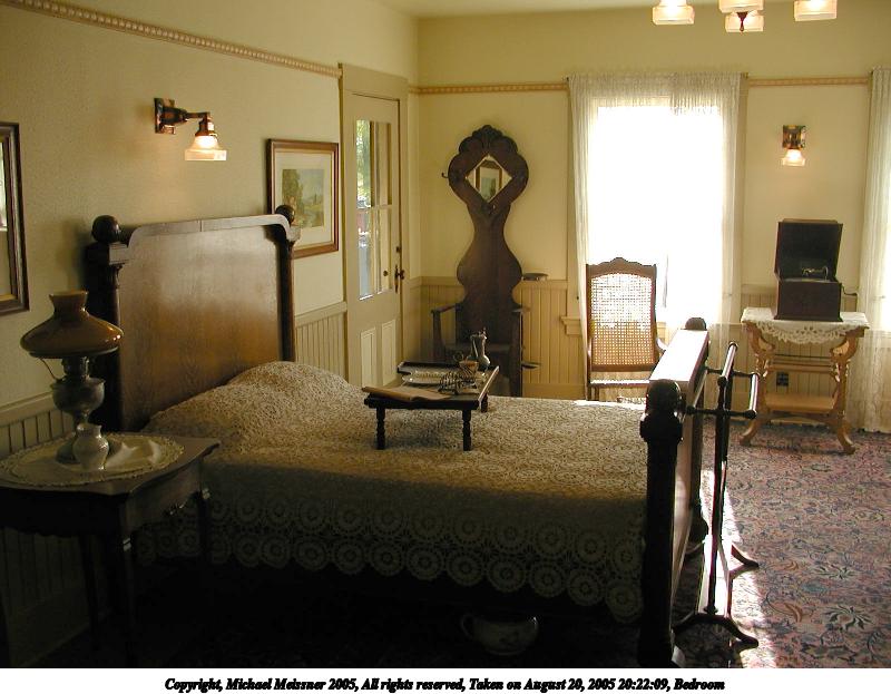 Picture #27: Bedroom 800x623, 76,801 bytes (76K), (html file) Copyright, Michael Meissner 2005, All rights reserved Olympus C-2100UZ camera f/2.8, ISO 100, 1/125 sec, 7.0mm, auto mode, SHQ, cloudy, matrix metering 35mm equivalent focal length 39.0mm Taken by Michael Meissner on August 20, 2005 20:22:09 Last modified on August 27, 2005 at 13:02 Shutter speed of 1/125 or 1/250 may indicate use of flash |