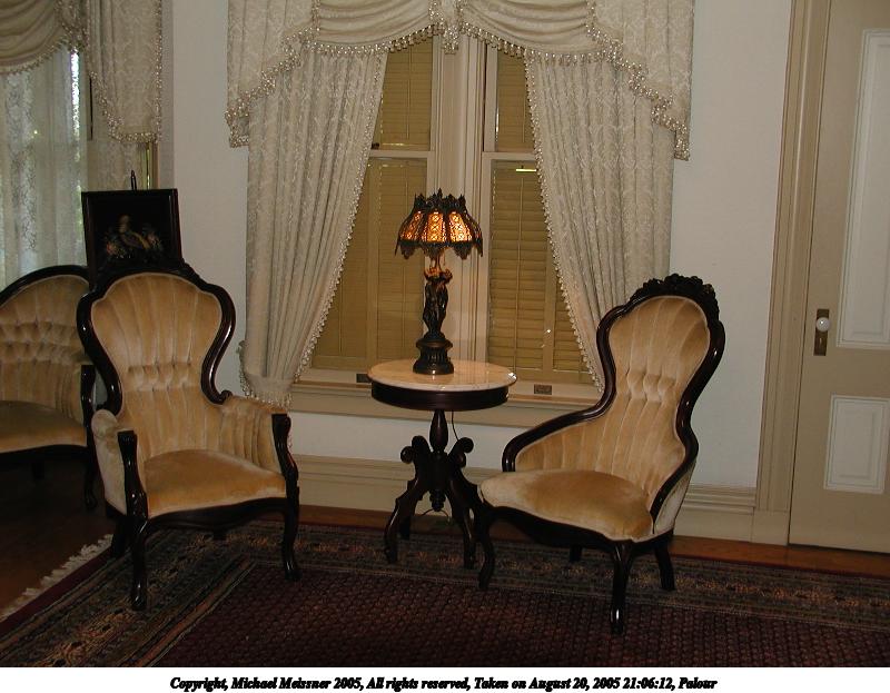 Picture #19: Palour 800x623, 80,551 bytes (79K), (html file) Copyright, Michael Meissner 2005, All rights reserved Olympus C-2100UZ camera f/2.8, ISO 100, flash, 1/40 sec, 8.2mm, auto mode, SHQ, cloudy, matrix metering 35mm equivalent focal length 46.0mm Taken by Michael Meissner on August 20, 2005 21:06:12 Last modified on August 27, 2005 at 13:02 |