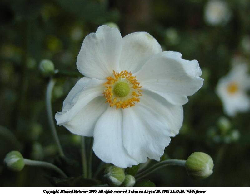 Picture #2: White flower 800x623, 42,927 bytes (42K), (html file) Copyright, Michael Meissner 2005, All rights reserved Olympus C-2100UZ camera f/2.8, ISO 100, 1/200 sec, 16.2mm, auto mode, SHQ, cloudy, matrix metering, macro 35mm equivalent focal length 90.0mm Taken by Michael Meissner on August 20, 2005 21:33:16 Last modified on August 27, 2005 at 13:02 |