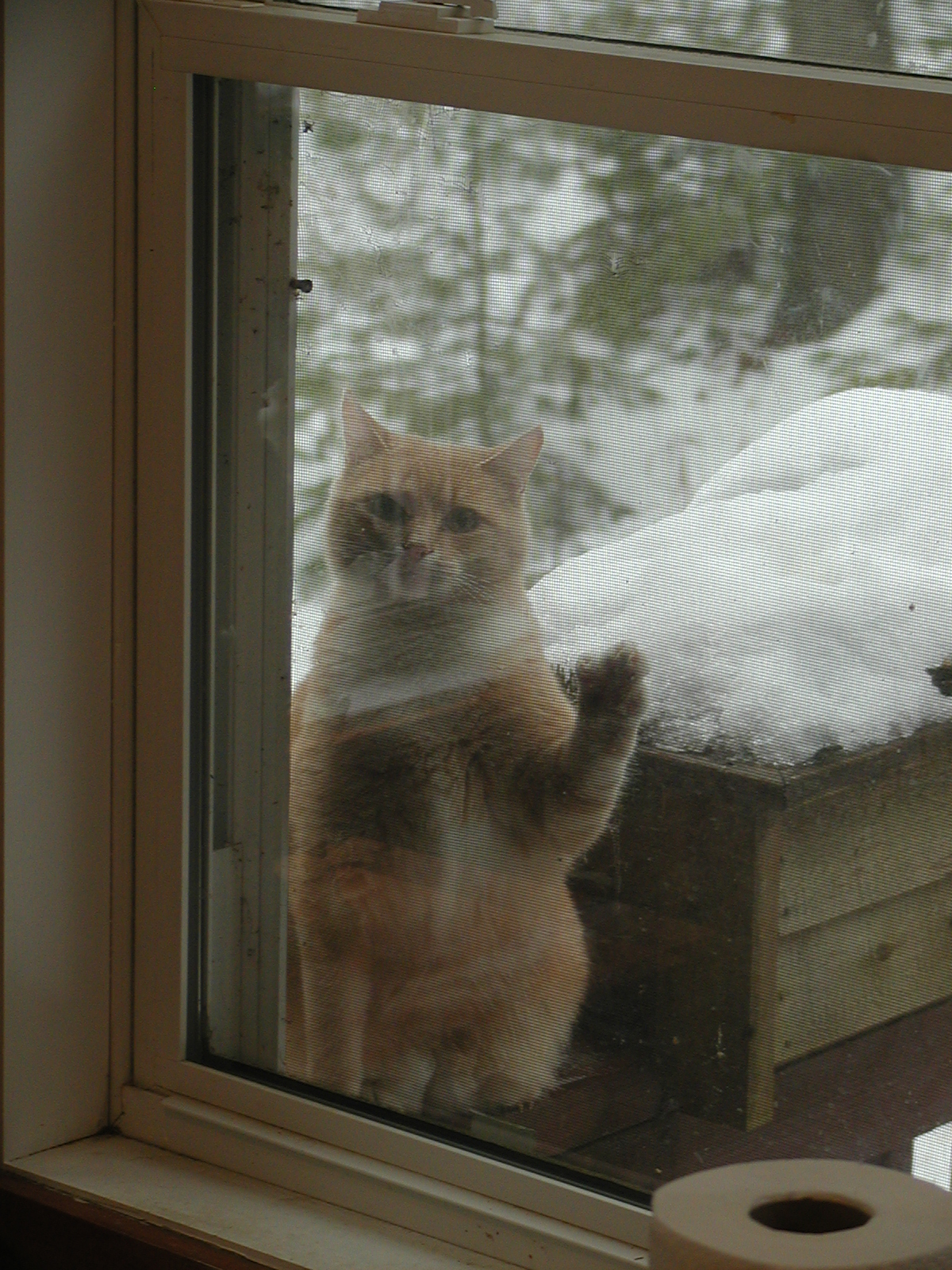 Picture #4: Let me in, pleeeeese! Thumb: 300x400, 20,555 bytes (21K) Small: 600x823, 80,607 bytes (79K), (html file) Large: 1200x1600, 1,202,662 bytes (1.1M), (html file) Copyright, Michael Meissner 2006, All rights reserved Olympus C-2100UZ camera f/2.8, ISO 100, 1/50 sec, 21.5mm, auto mode, SHQ, cloudy, matrix metering 35mm equivalent focal length 119.0mm Taken by Michael Meissner on January 06, 2006 09:16:14 Last modified on January 06, 2006 at 09:31 |