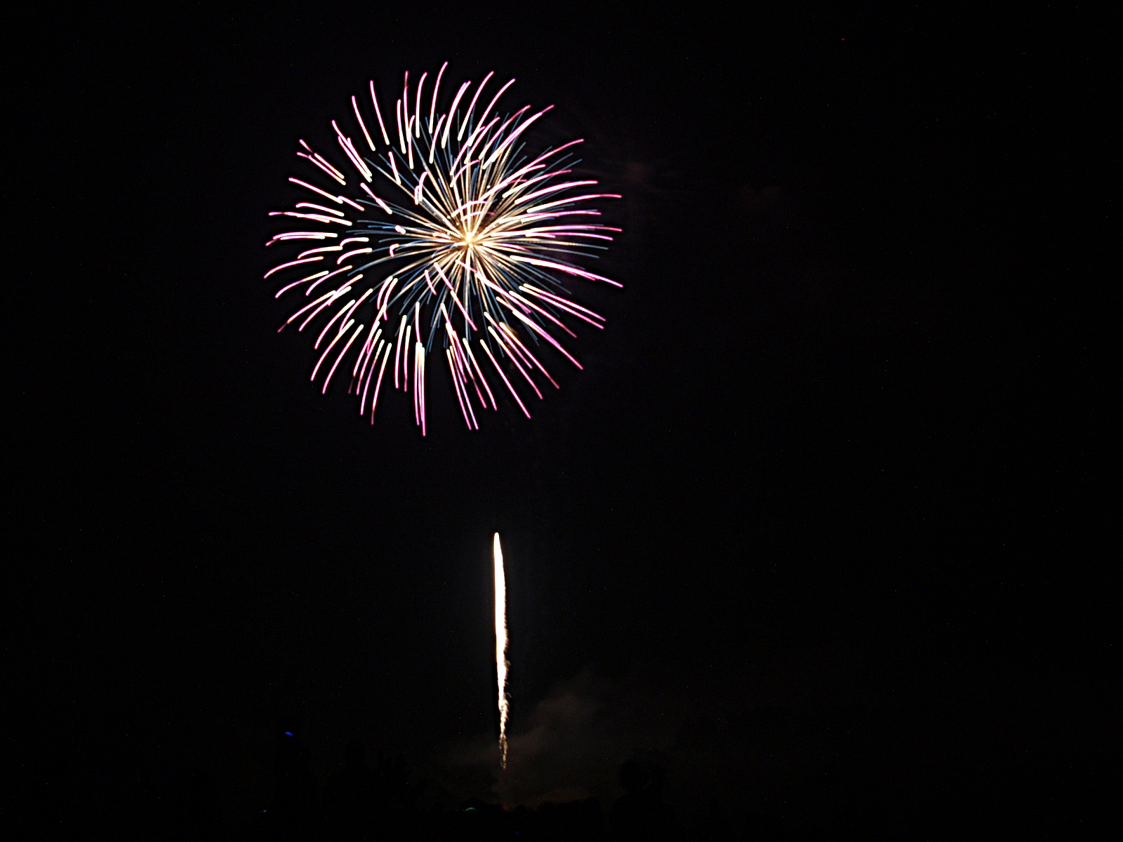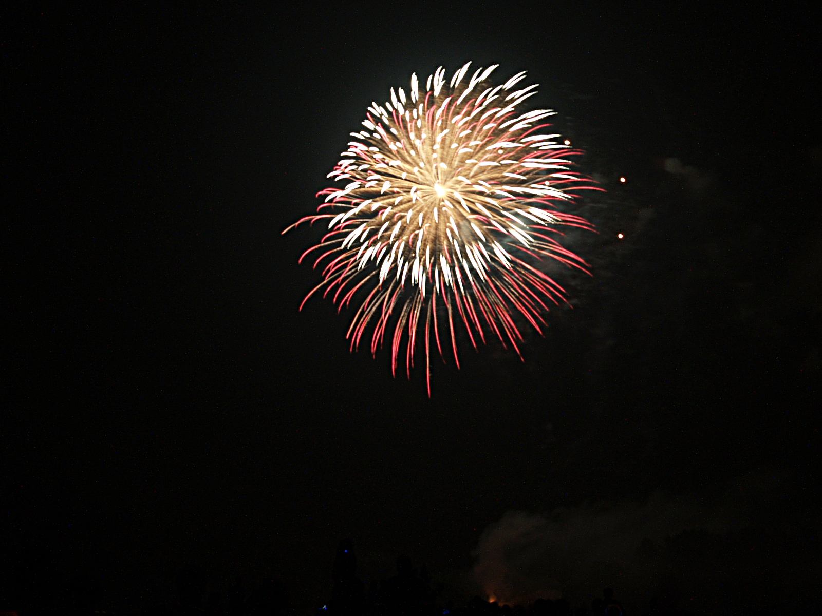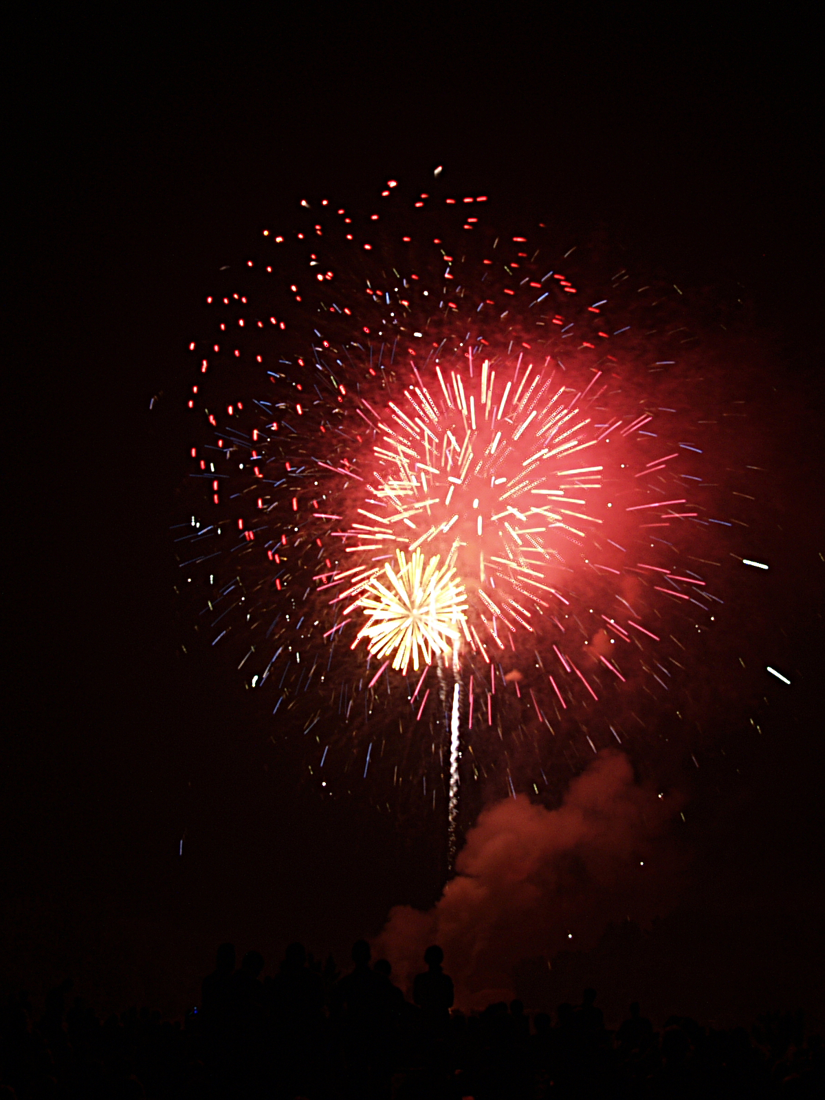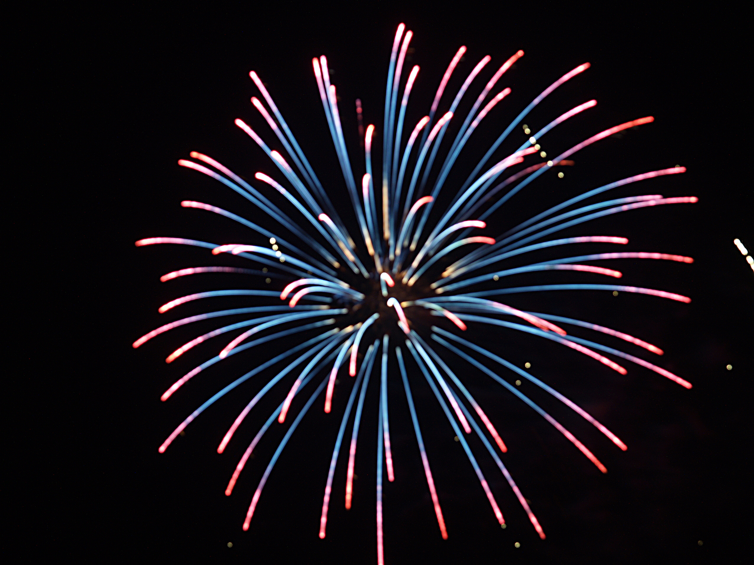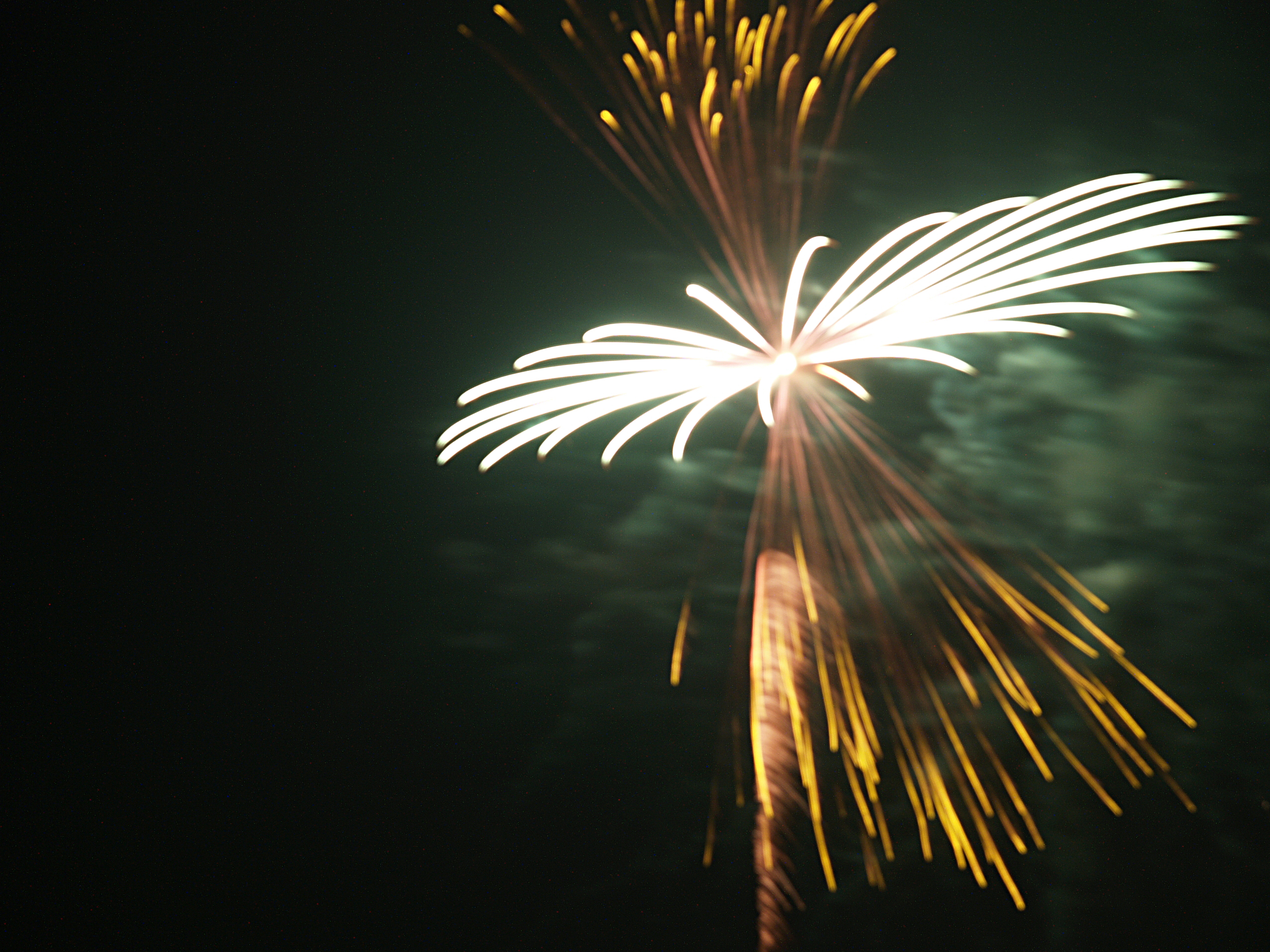 Picture #3: Fireworks in Acton, Massachusetts #3 Small: 640x503, 59,525 bytes (59K), (html file) Large: 2560x1920, 4,840,086 bytes (4.6M), (html file) Copyright, Michael Meissner 2006, All rights reserved Olympus E-1 camera with Olympus 14-54mm f/2.8-3.5 lens f/5.6, ISO 100, 2.4 sec, 54.0mm, manual mode, SHQ, matrix metering, +2 sharpening, manual focus 35mm equivalent focal length 108.0mm Extra equipment used: tripod, rm-cb01 wired shutter release, bulb mode Taken by Michael Meissner on July 04, 2006 21:30:21 Last modified on July 04, 2006 at 23:35 |