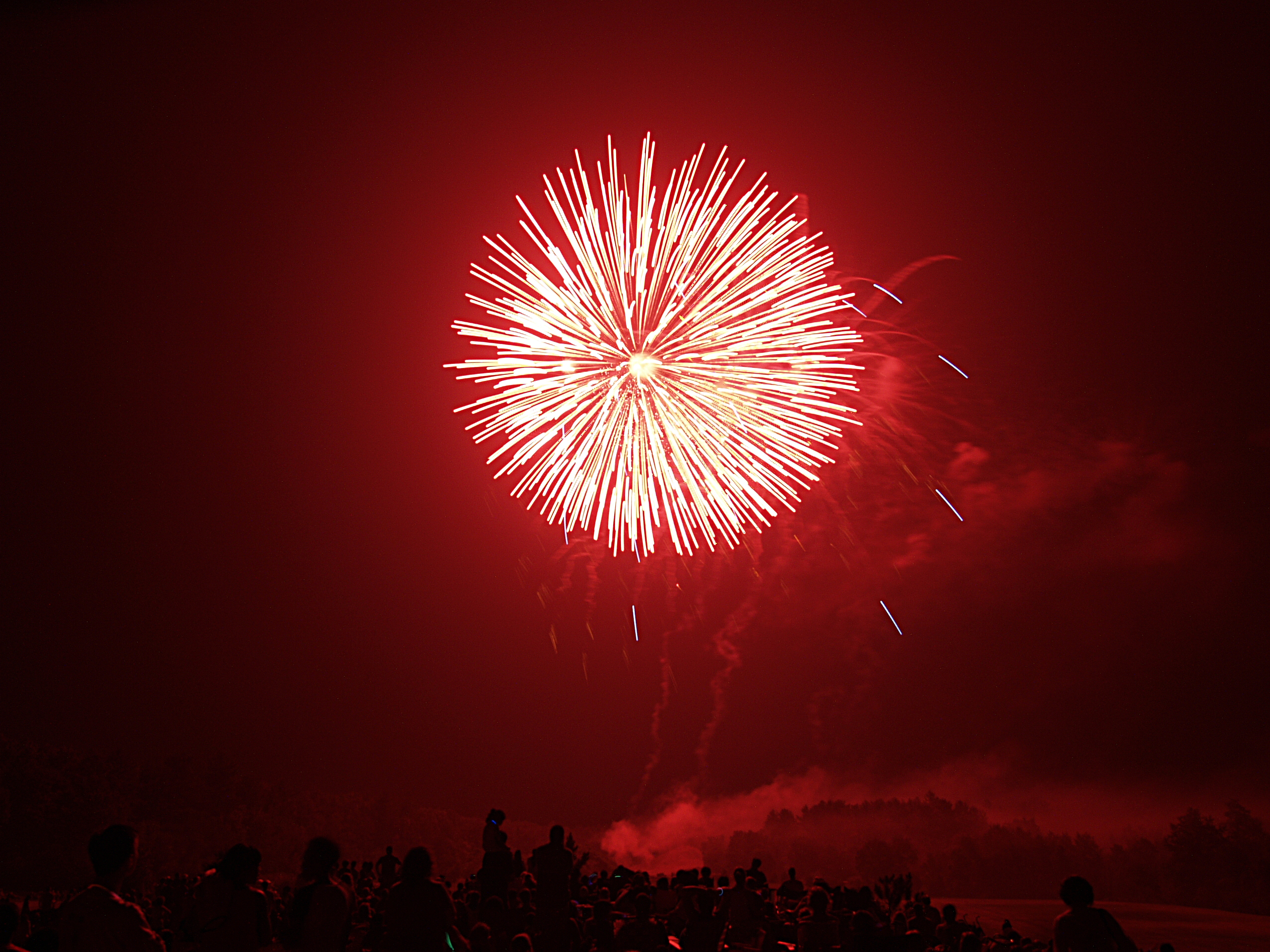 Picture #2: Fireworks in Acton, Massachusetts #2 Small: 640x503, 69,692 bytes (69K), (html file) Large: 2560x1920, 4,665,648 bytes (4.4M), (html file) Copyright, Michael Meissner 2006, All rights reserved Olympus E-1 camera with Olympus 14-54mm f/2.8-3.5 lens f/5.6, ISO 100, 1.3 sec, 54.0mm, manual mode, SHQ, matrix metering, +2 sharpening, manual focus 35mm equivalent focal length 108.0mm Extra equipment used: tripod, rm-cb01 wired shutter release, bulb mode Taken by Michael Meissner on July 04, 2006 21:30:02 Last modified on July 04, 2006 at 23:35 |