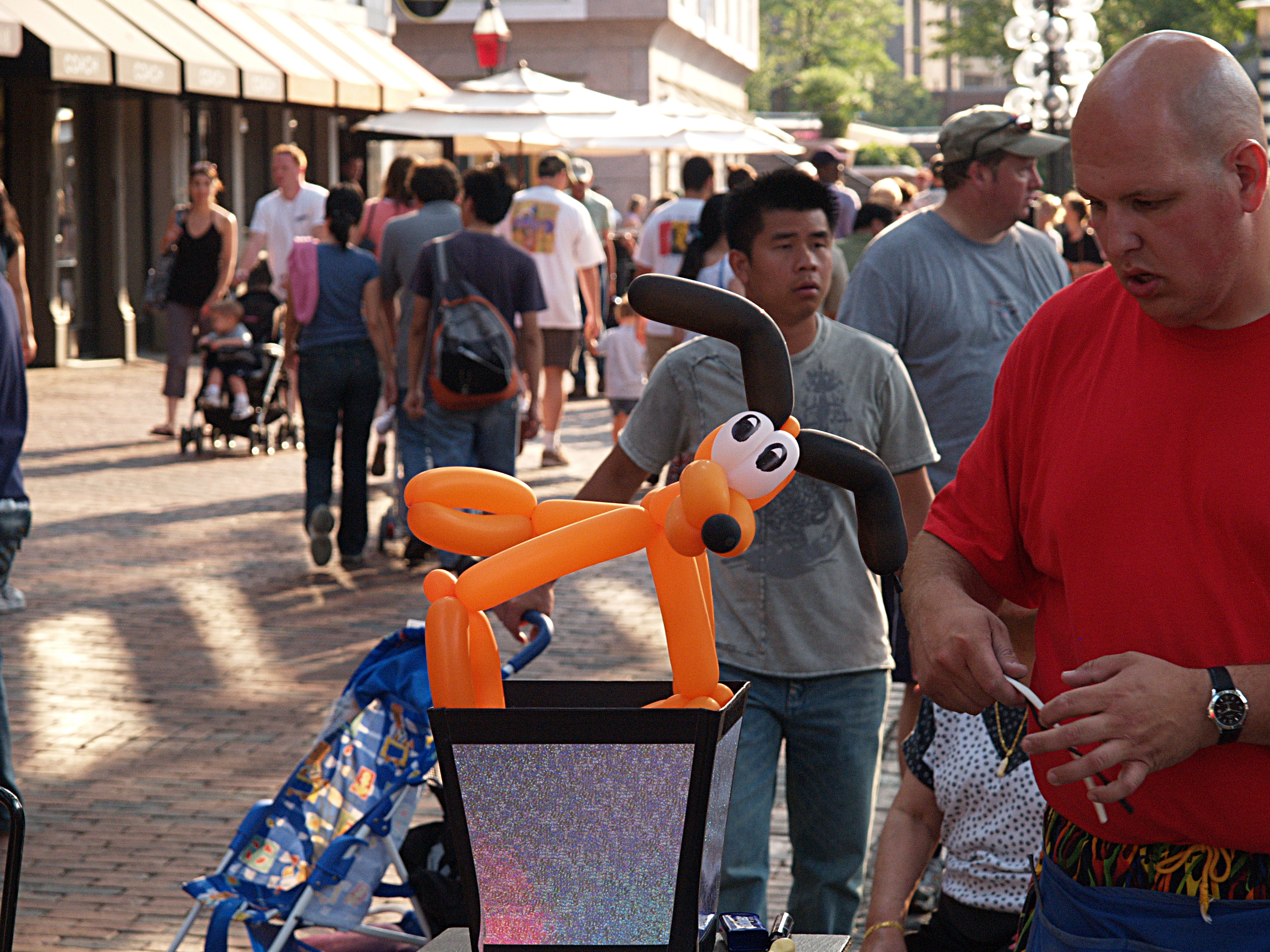 Picture #2: Balloon animal Small: 640x503, 84,819 bytes (83K), (html file) Large: 2560x1920, 5,437,713 bytes (5.2M), (html file) Copyright, Michael Meissner 2006, All rights reserved Olympus E-1 camera with Olympus 14-54mm f/2.8-3.5 lens f/5.6, ISO 400, 1/250 sec, 54.0mm, auto mode, SHQ, matrix metering, +2 sharpening 35mm equivalent focal length 108.0mm Taken by Michael Meissner on July 08, 2006 17:56:46 Last modified on July 08, 2006 at 20:30 |