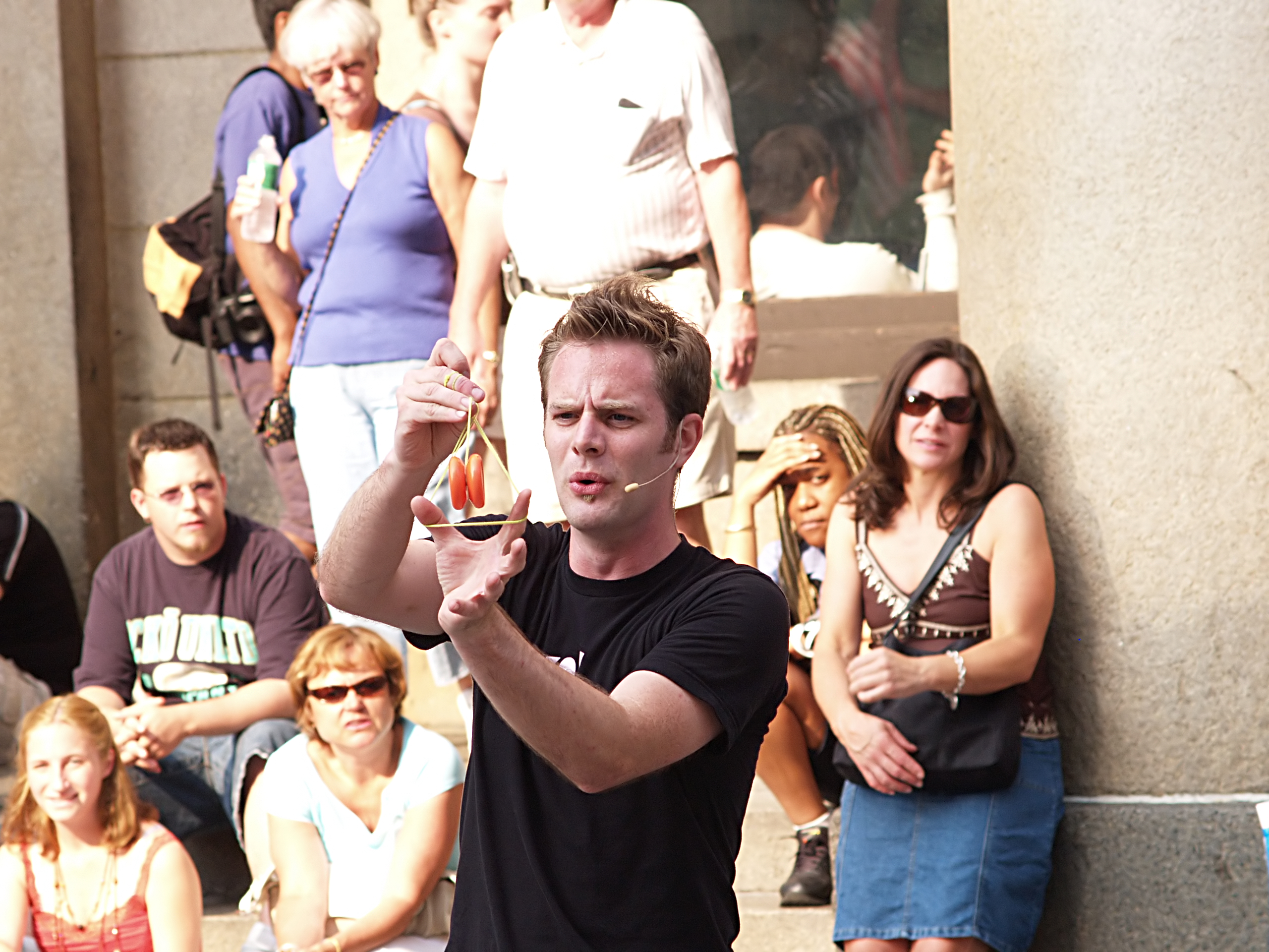 Picture #15: Yoyo artists from yoyoshow.com #5 Small: 600x846, 117,381 bytes (115K), (html file) Large: 1200x1600, 1,762,417 bytes (1.7M), (html file) Copyright, Michael Meissner 2006, All rights reserved Olympus E-1 camera with Olympus 50-200mm f/2.8-3.5 lens f/8.0, ISO 400, 1/500 sec, 50.0mm, aperture priority, SHQ, matrix metering, +2 sharpening 35mm equivalent focal length 100.0mm Extra equipment used: neatimage Taken by Michael Meissner on July 08, 2006 17:36:21 Last modified on July 08, 2006 at 20:29 |