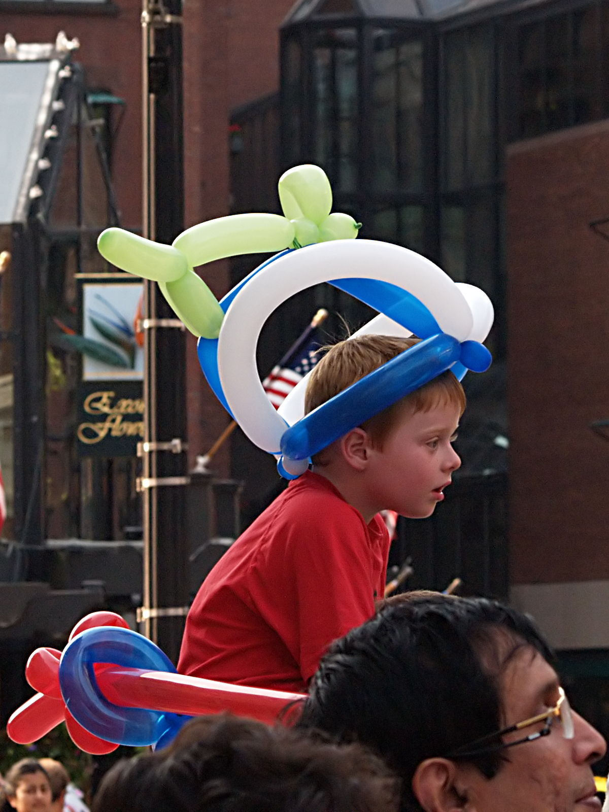 Picture #3: Making a balloon hat Small: 640x503, 117,836 bytes (116K), (html file) Large: 2560x1920, 5,879,285 bytes (5.6M), (html file) Copyright, Michael Meissner 2006, All rights reserved Olympus E-1 camera with Olympus 14-54mm f/2.8-3.5 lens f/5.6, ISO 400, 1/200 sec, 28.0mm, auto mode, SHQ, matrix metering, +2 sharpening 35mm equivalent focal length 56.0mm Taken by Michael Meissner on July 08, 2006 17:57:11 Last modified on July 08, 2006 at 20:30 |
