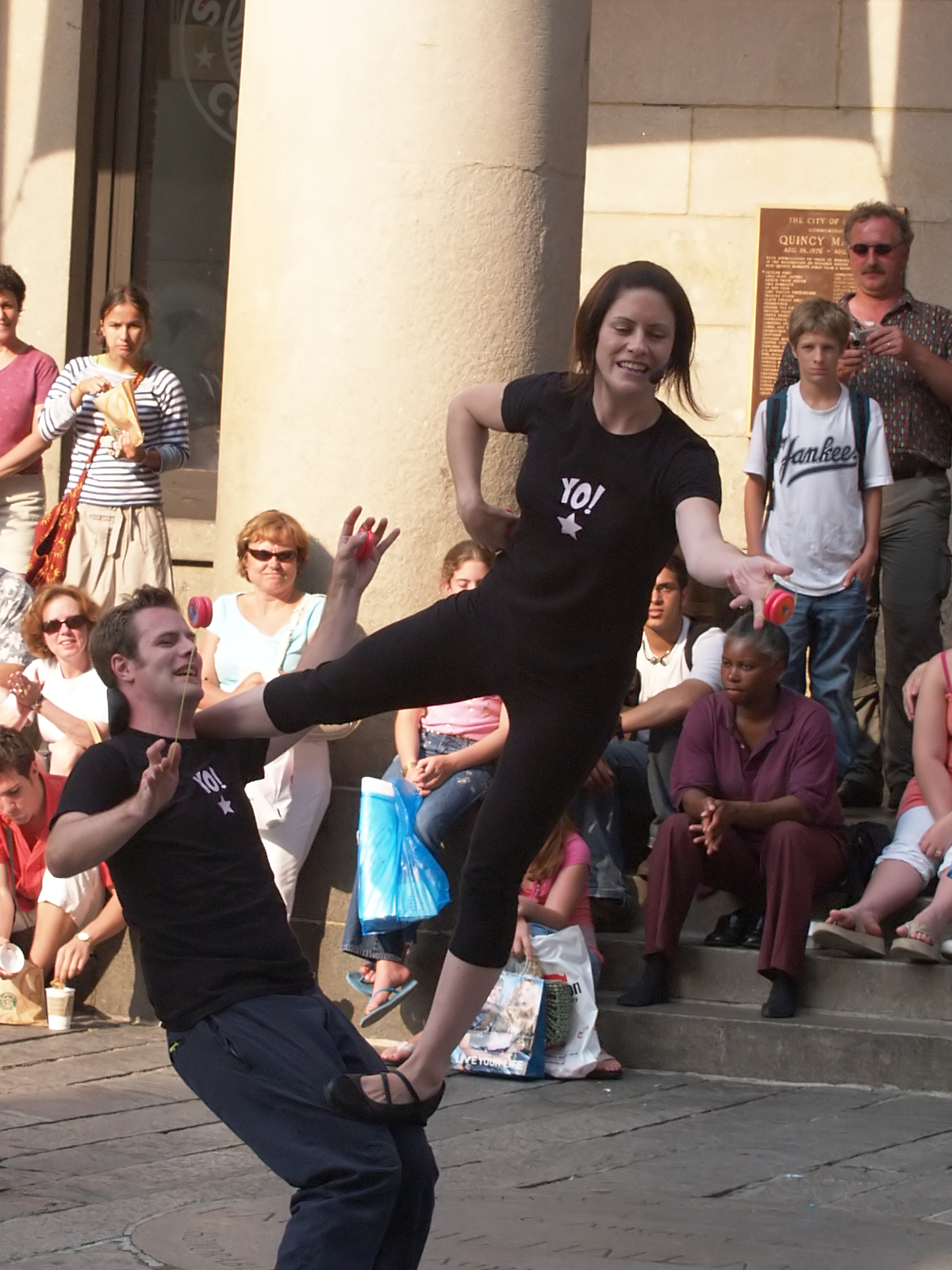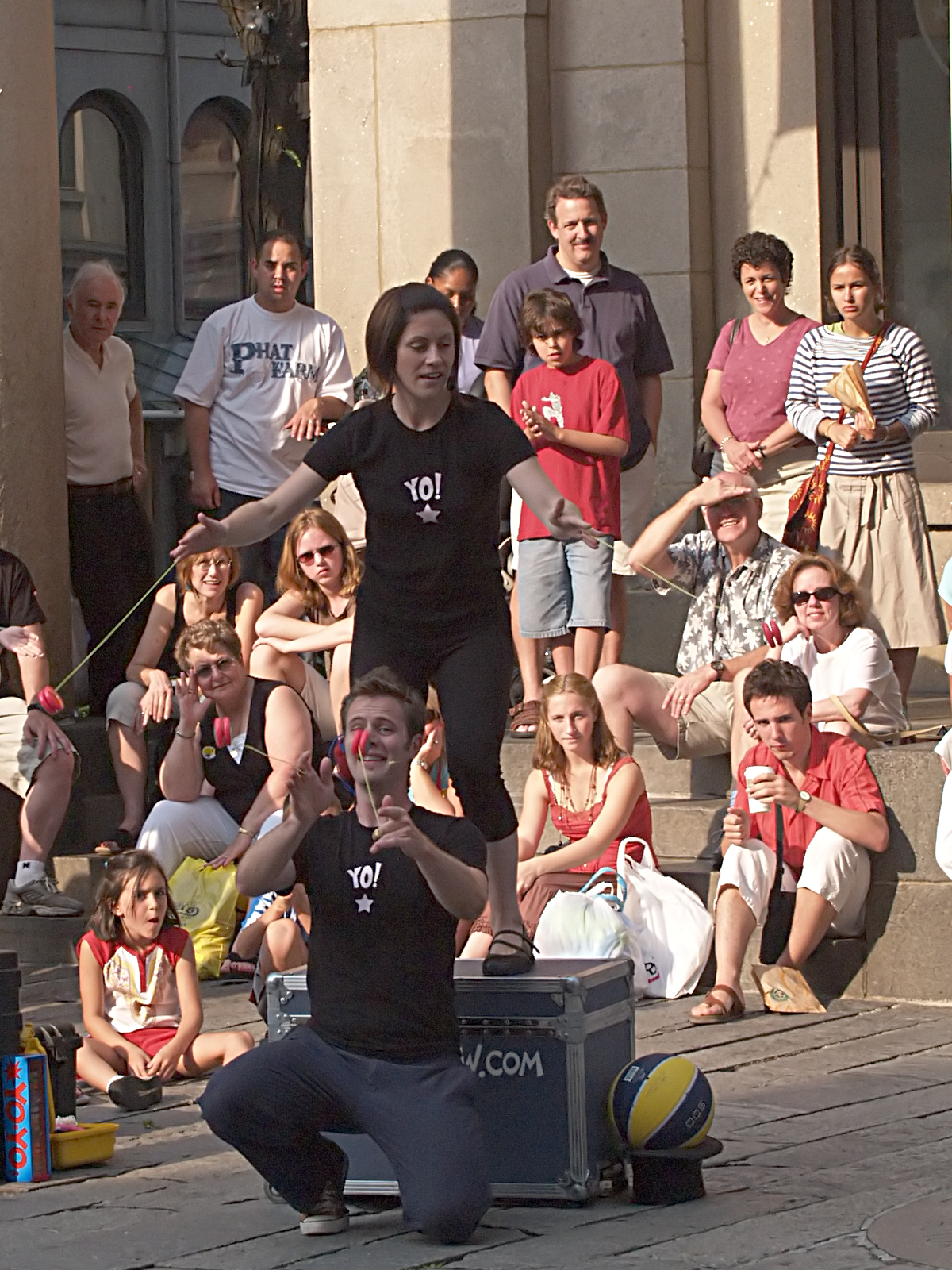 Picture #10: Yoyo artists from yoyoshow.com Small: 640x503, 71,441 bytes (70K), (html file) Large: 2560x1920, 2,854,686 bytes (2.7M), (html file) Copyright, Michael Meissner 2006, All rights reserved Olympus E-1 camera with Olympus 40-150mm f/3.5-4.5 lens f/8.0, ISO 400, 1/200 sec, 128.0mm, aperture priority, SHQ, matrix metering, +2 sharpening 35mm equivalent focal length 256.0mm Extra equipment used: neatimage Taken by Michael Meissner on July 08, 2006 17:19:10 Last modified on July 08, 2006 at 20:28 |