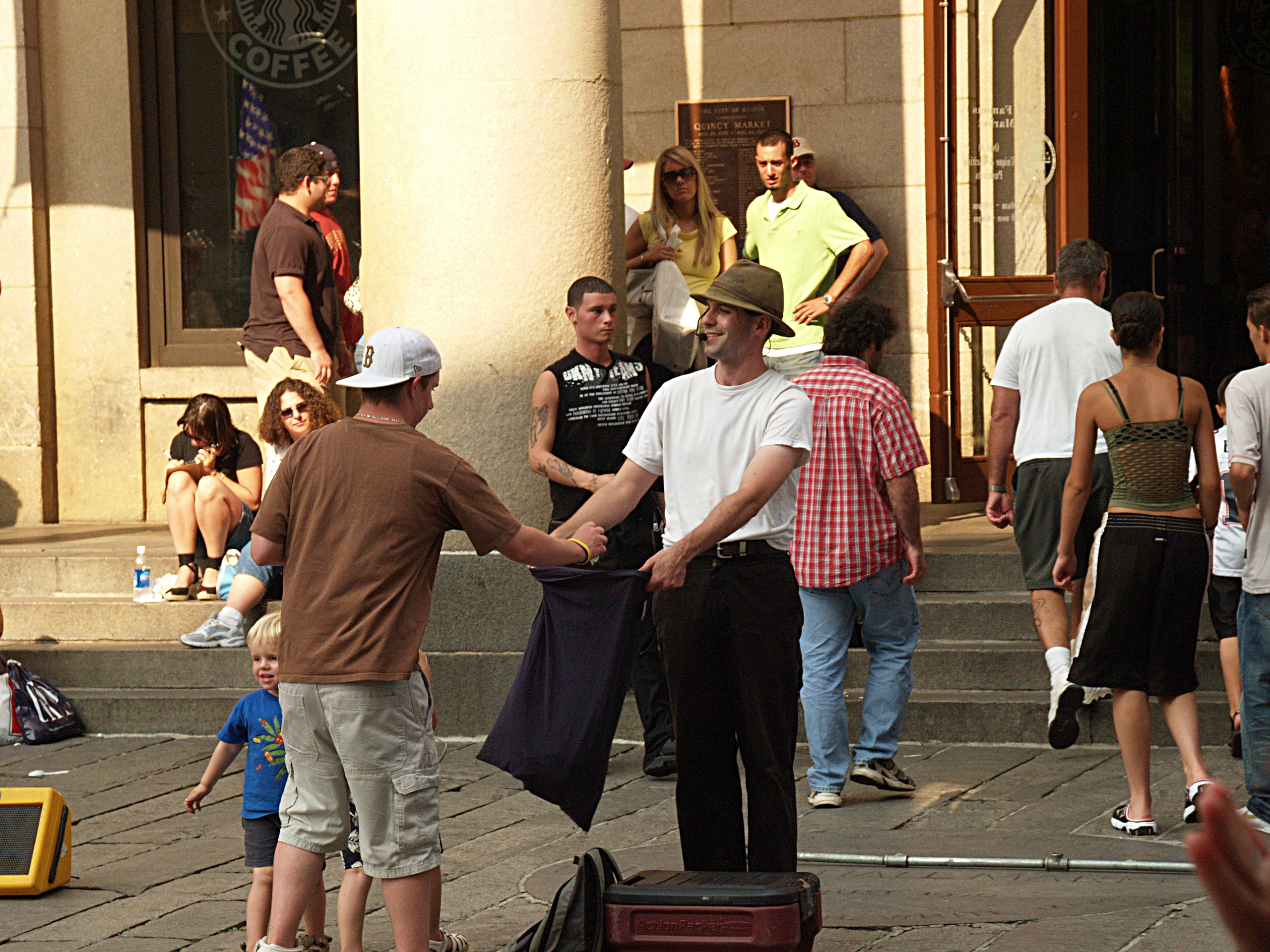 Picture #9: If I hear another street performer, I'm going to throw up Small: 640x526, 108,297 bytes (106K), (html file) Large: 2560x1920, 6,270,565 bytes (6.0M), (html file) Copyright, Michael Meissner 2006, All rights reserved Olympus E-1 camera with Olympus 40-150mm f/3.5-4.5 lens f/8.0, ISO 800, 1/320 sec, 40.0mm, aperture priority, SHQ, matrix metering, +2 sharpening 35mm equivalent focal length 80.0mm Taken by Michael Meissner on July 08, 2006 17:14:55 Last modified on July 08, 2006 at 20:28 |